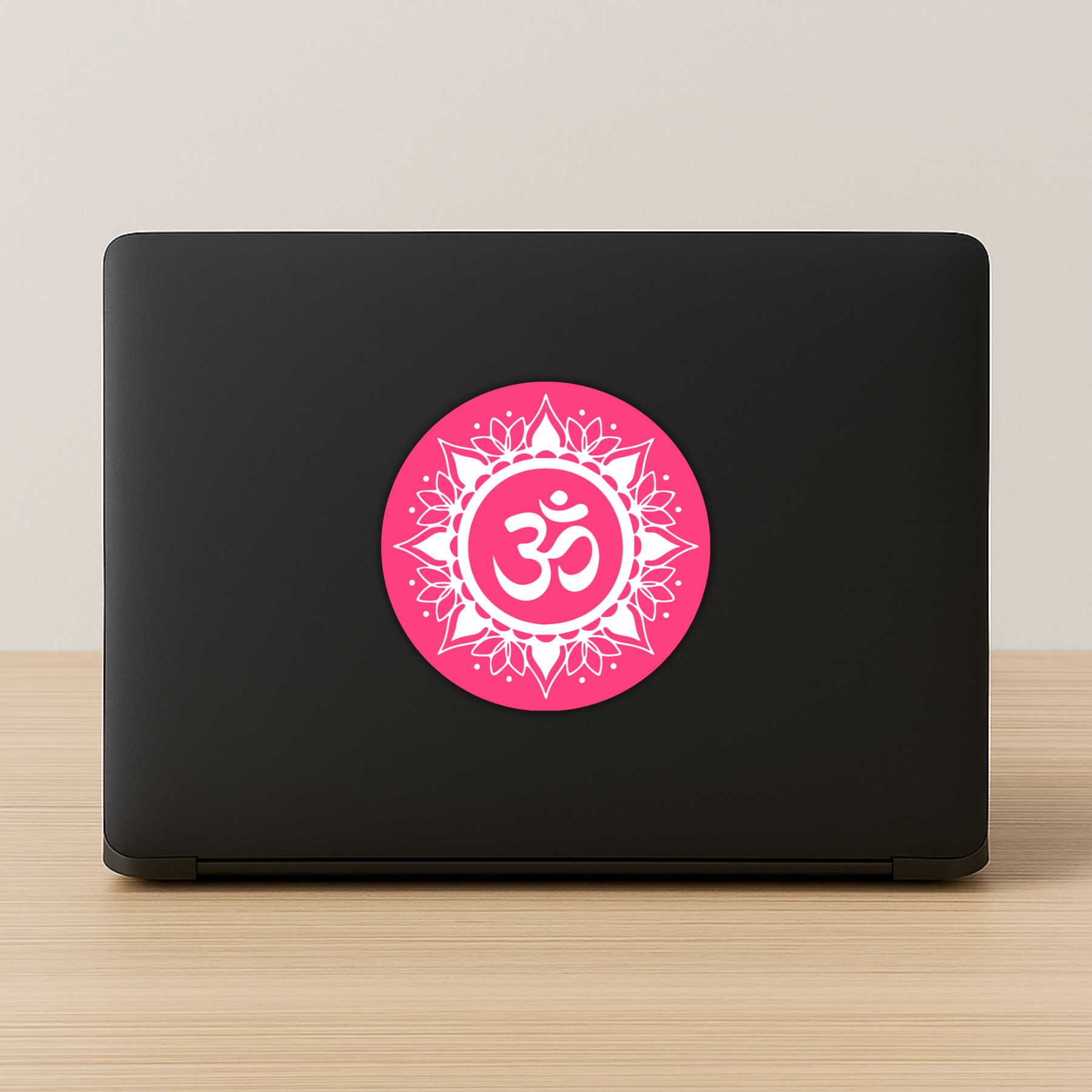 Bring divine energy and vibrant charm into your space with this Pink ॐ Mandala sticker, featuring the sacred ‘Om’ symbol in white over a bold floral mandala circle. Ideal for pooja rooms, meditation corners, yoga studios, laptops, and car dashboards — this design balances color with calm.
