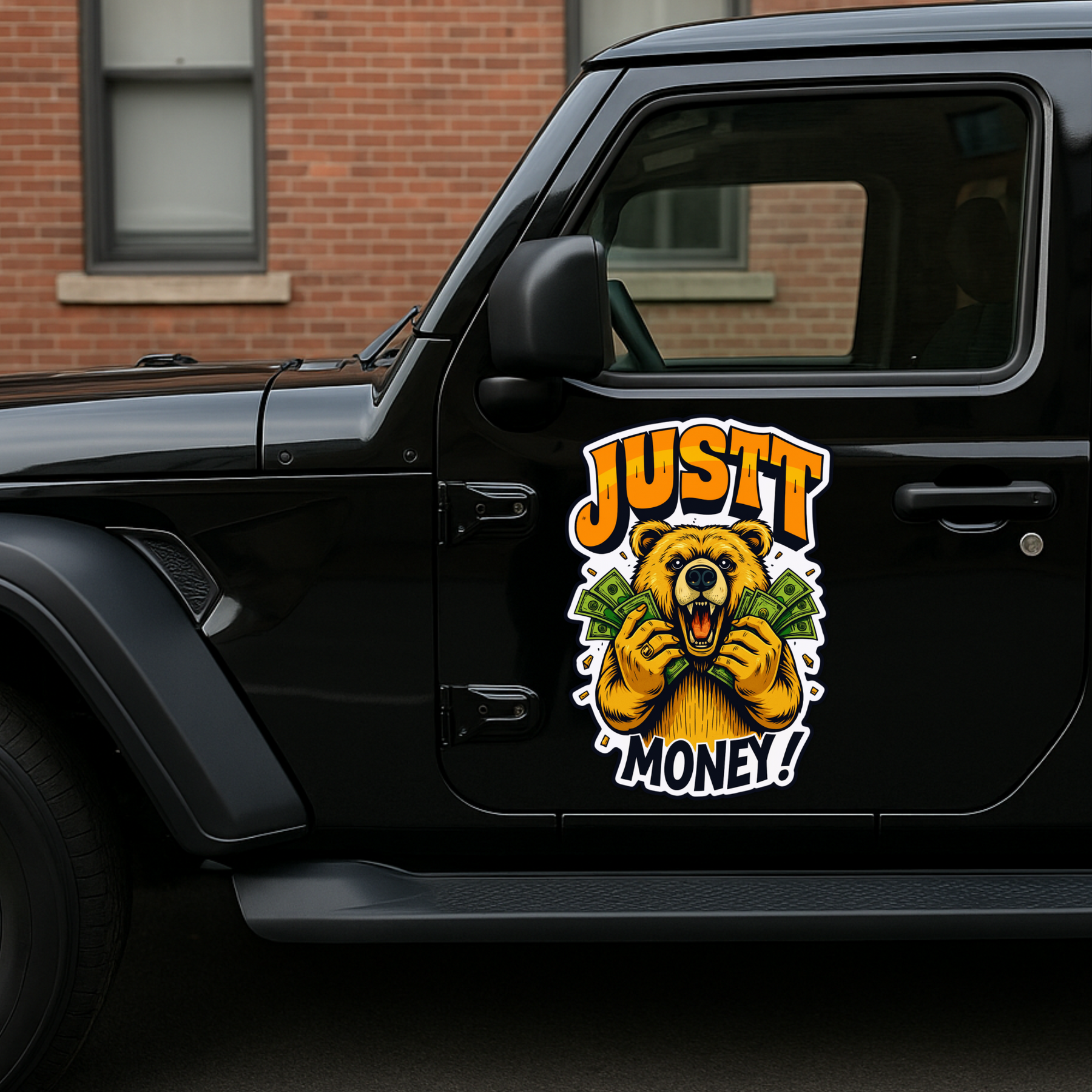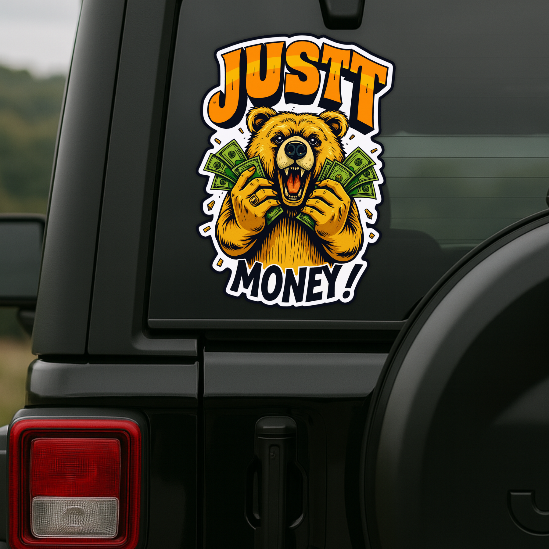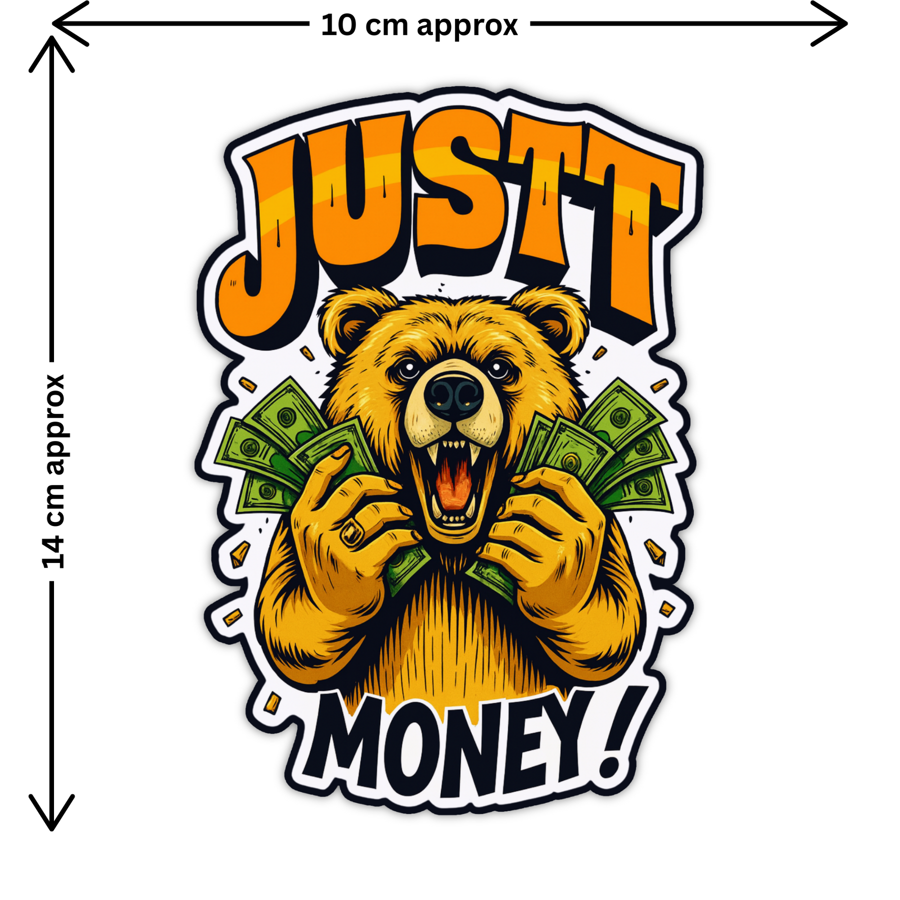 Make your vibe loud and bold with the STIXY Justt Money Sticker, featuring a fierce money-loving bear flaunting stacks of cash with unapologetic energy. Designed for hustlers, dreamers, and those who live by their grind — this STIXY sticker brings fun, sarcasm, and confidence together in one eye-catching graphic.