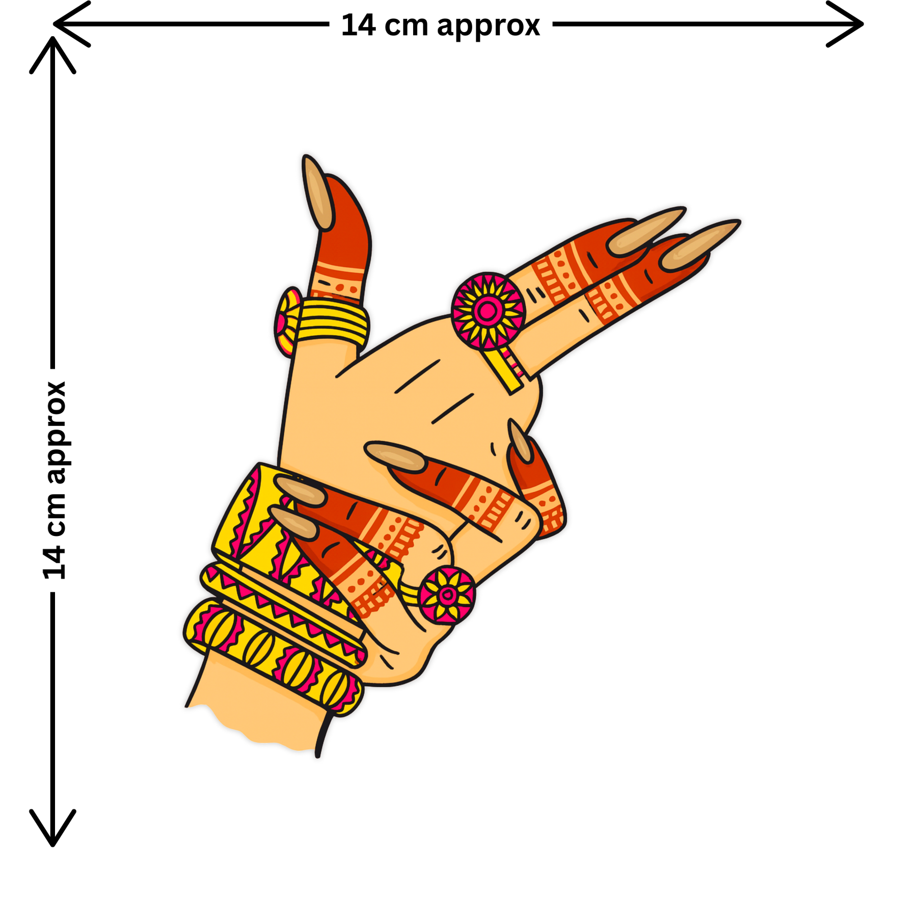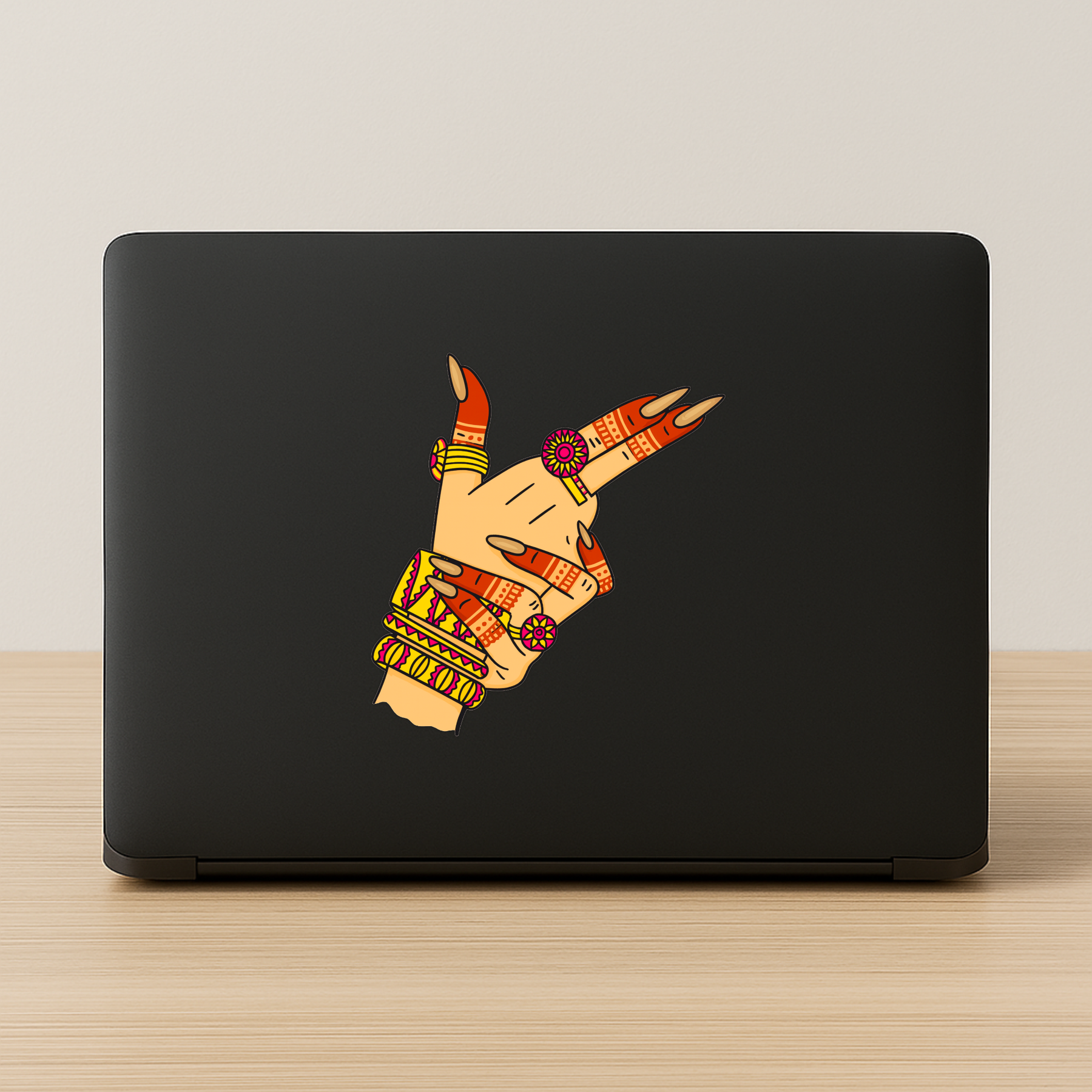 Celebrate the beauty of Indian tradition with the STIXY Indian Bridal Hand Sticker, a vibrant design inspired by mehndi, bangles, and festive jewelry. This elegant sticker brings cultural charm to your belongings — perfect for those who love ethnic, colorful, and artistic vibes.