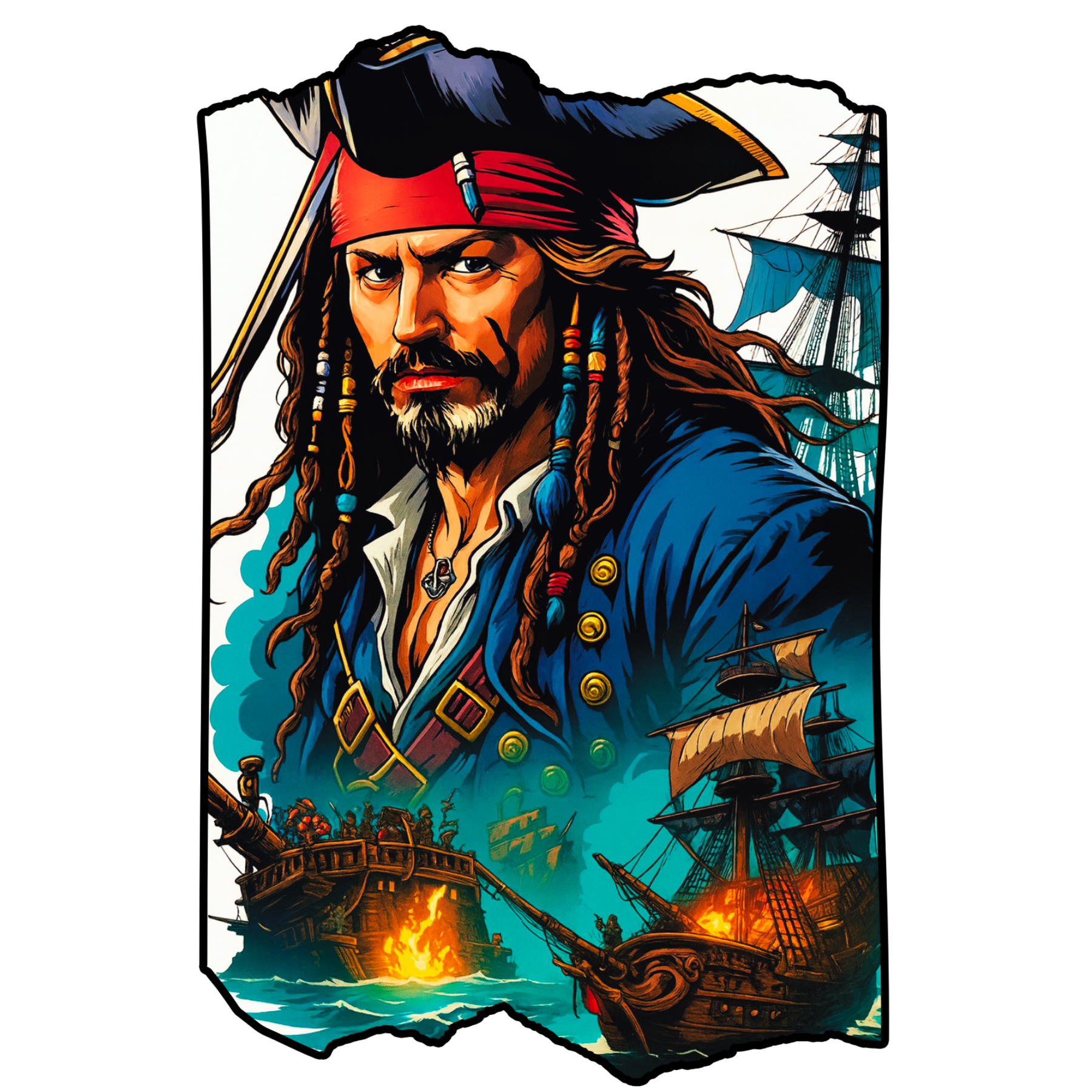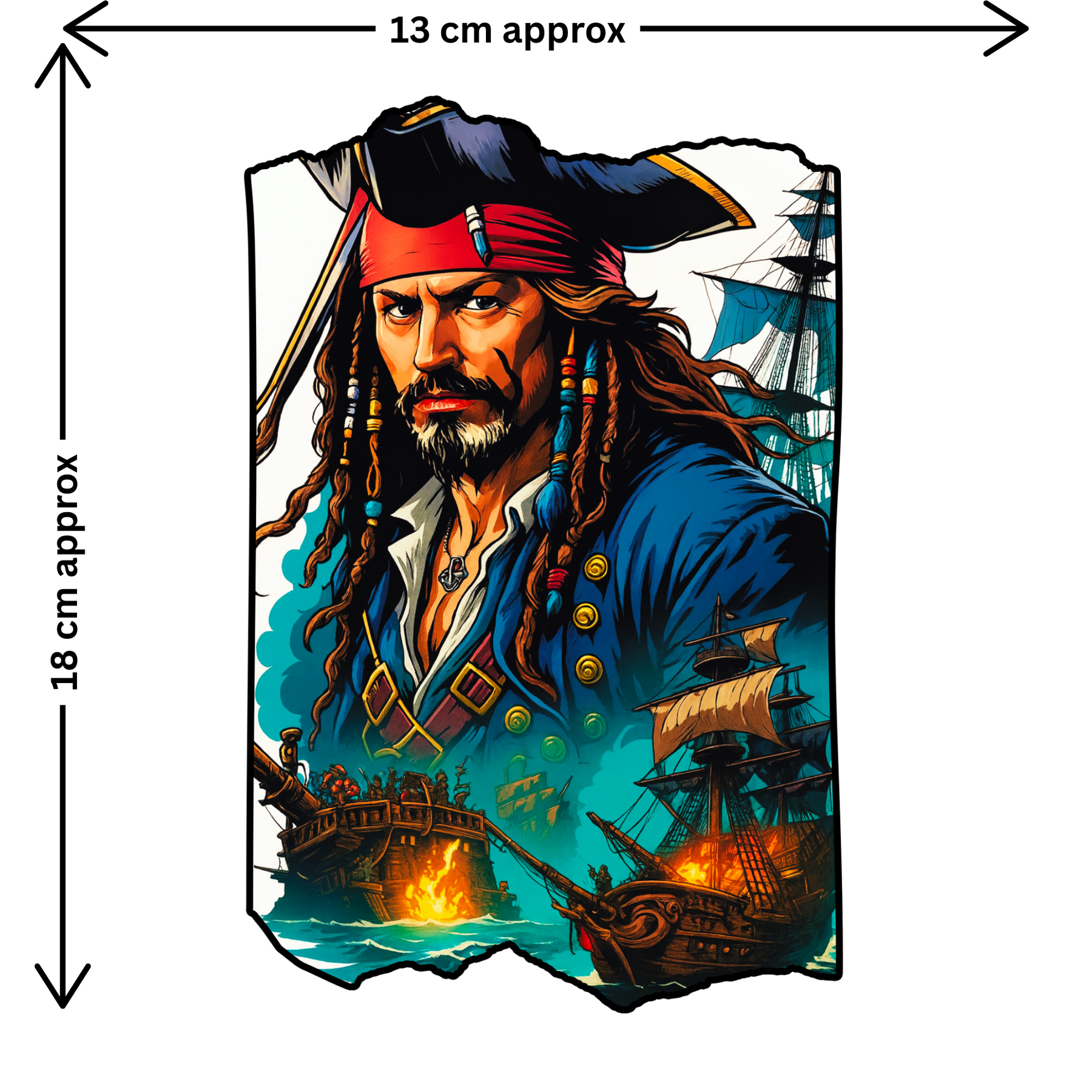 Set sail into bold adventures with the STIXY Pirate Captain Art Sticker, a fierce and detailed design inspired by the fearless spirit of the sea. Featuring a striking pirate commander and blazing ships on the horizon, this sticker is perfect for adventurers, travelers, and dreamers who live by their own code.
