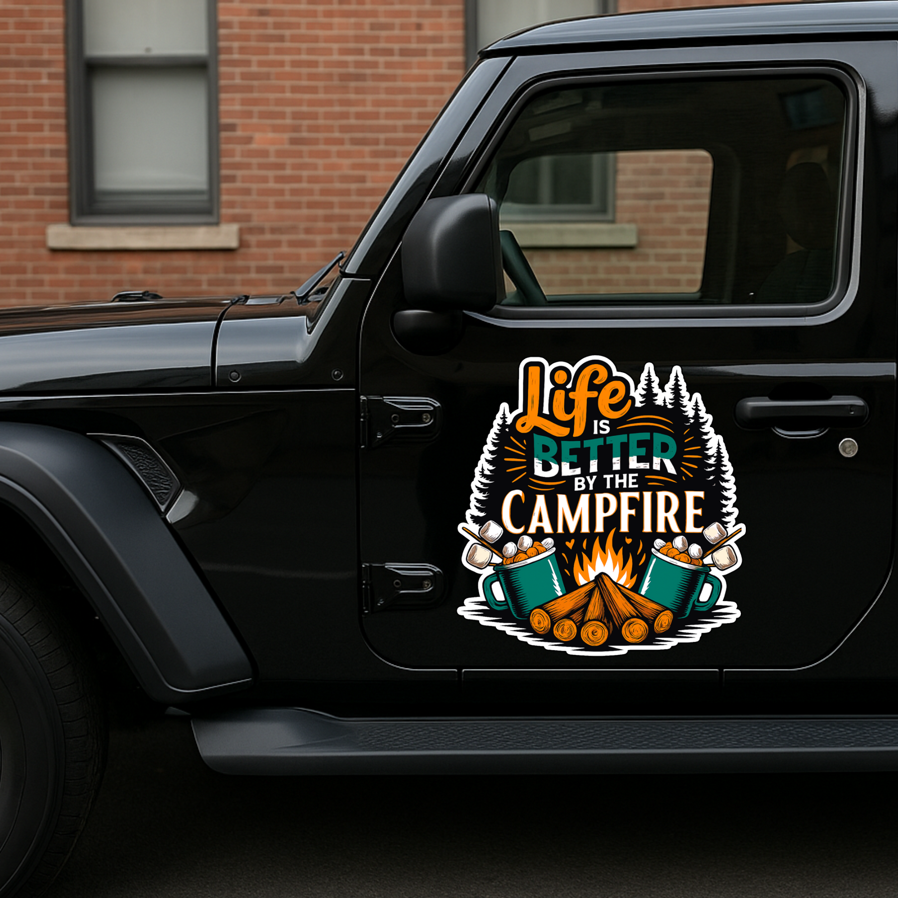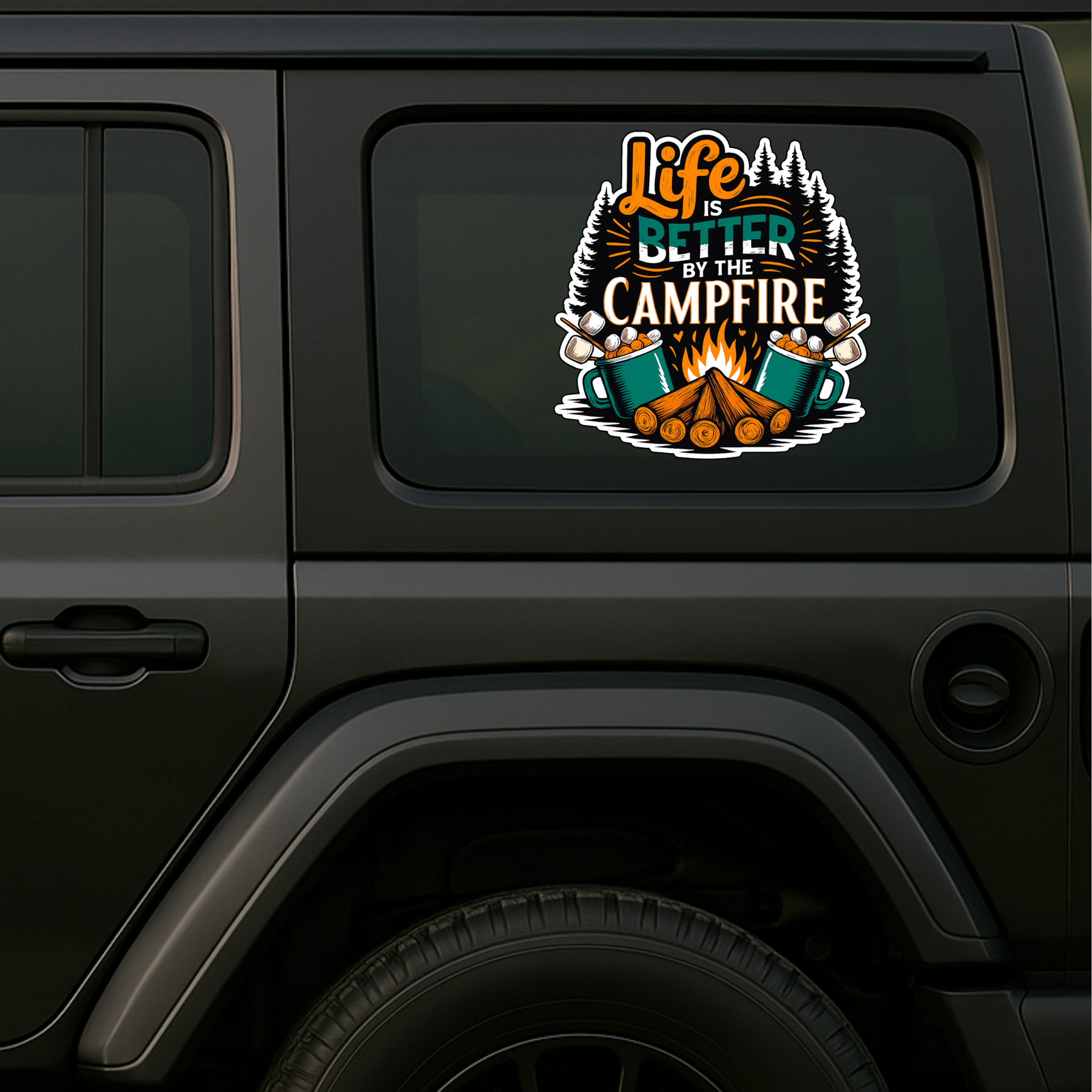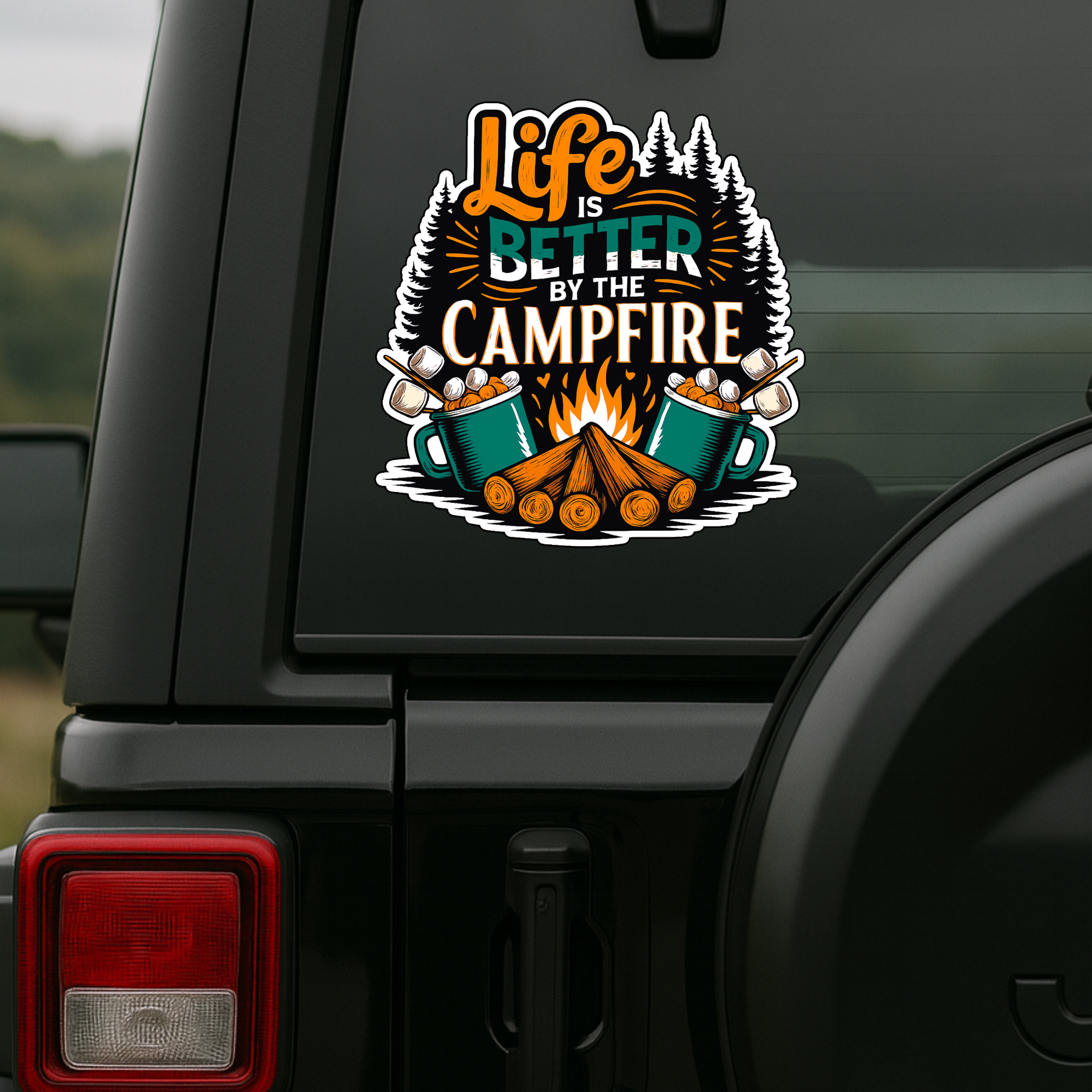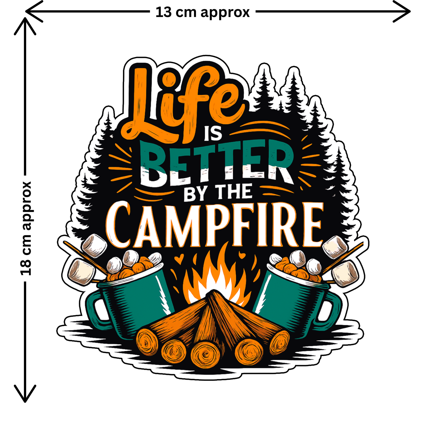 LIFE IS BETTER BY THE CAMPFIRE STICKER – OUTDOOR ADVENTURE SERIES