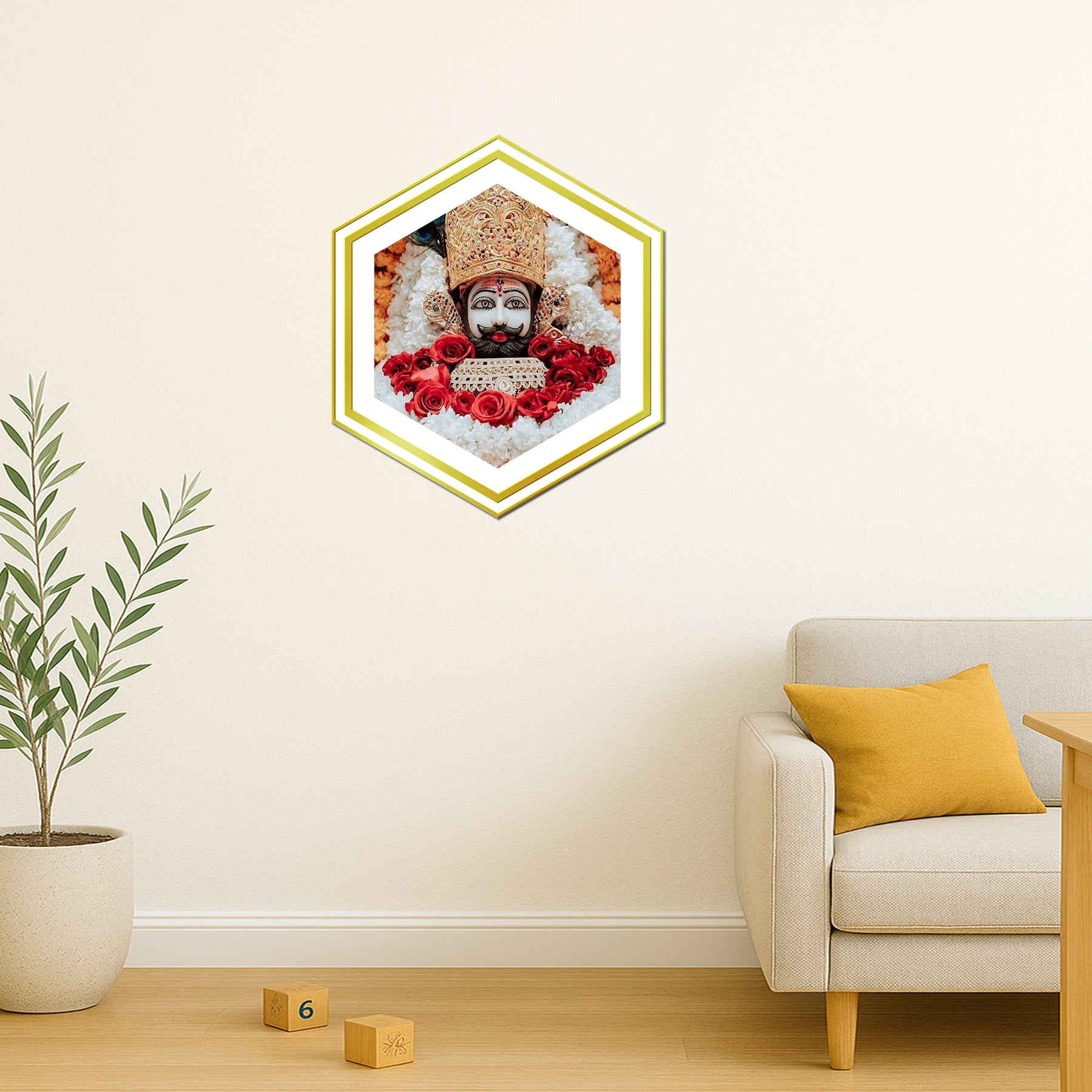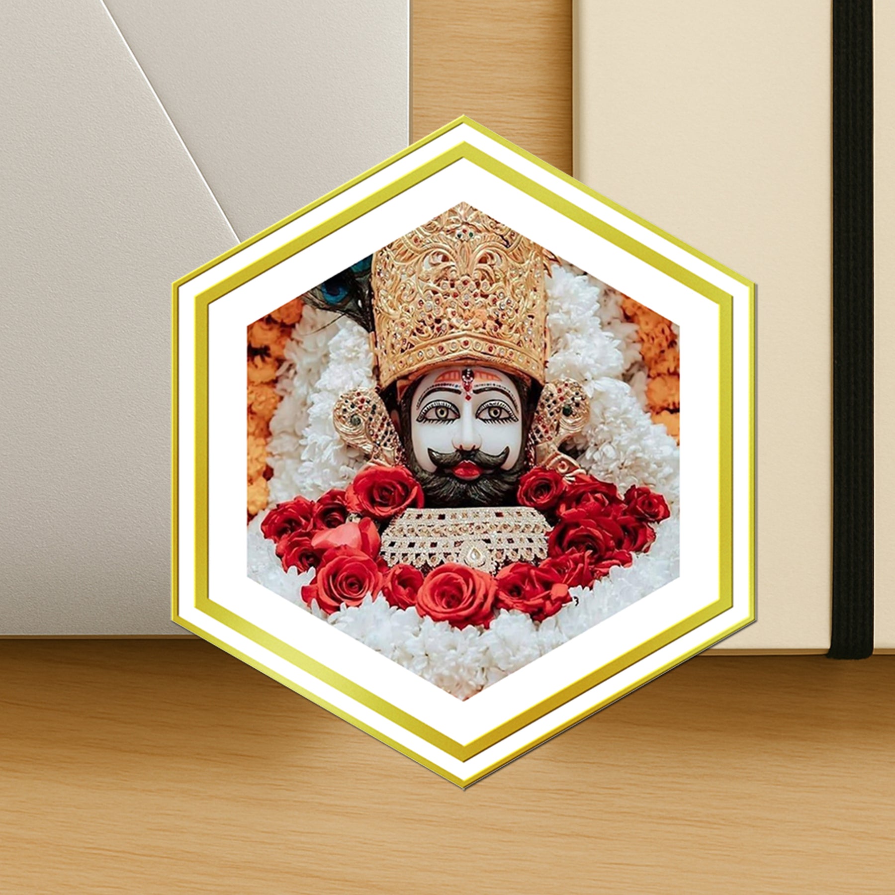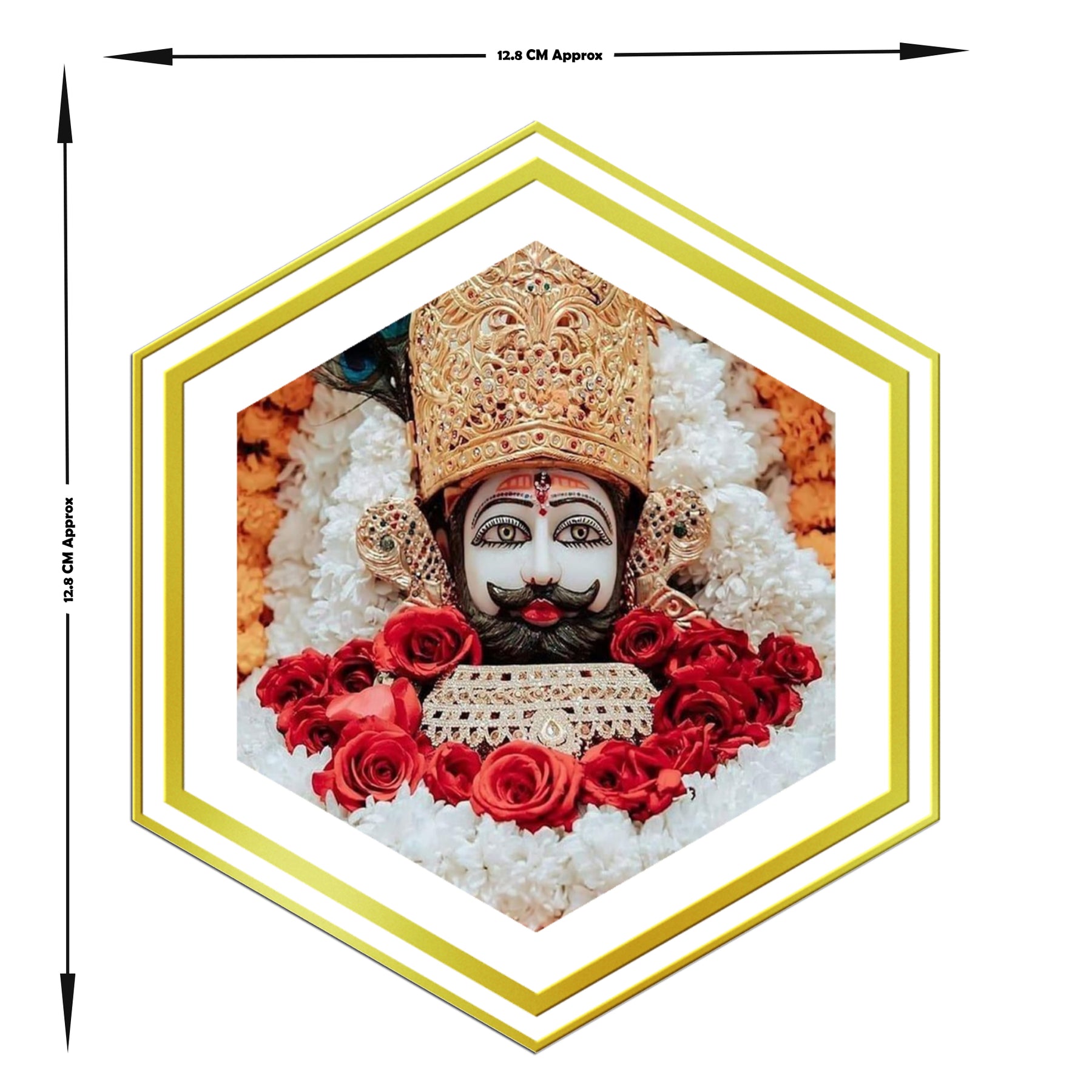 Khatu Shyam Baba Water-Resistant Devotional Sticker – Golden Hexagon Floral Design