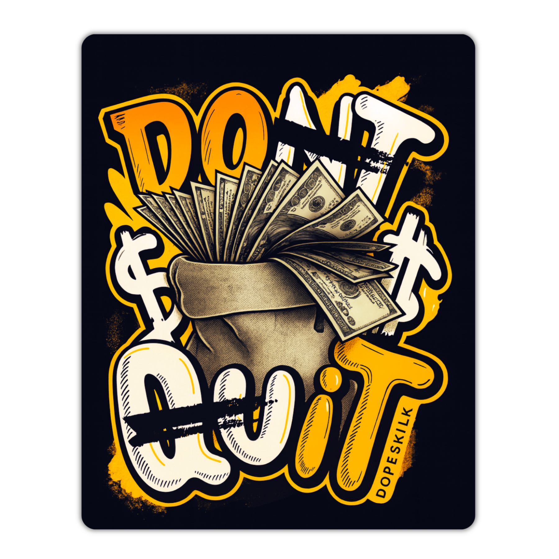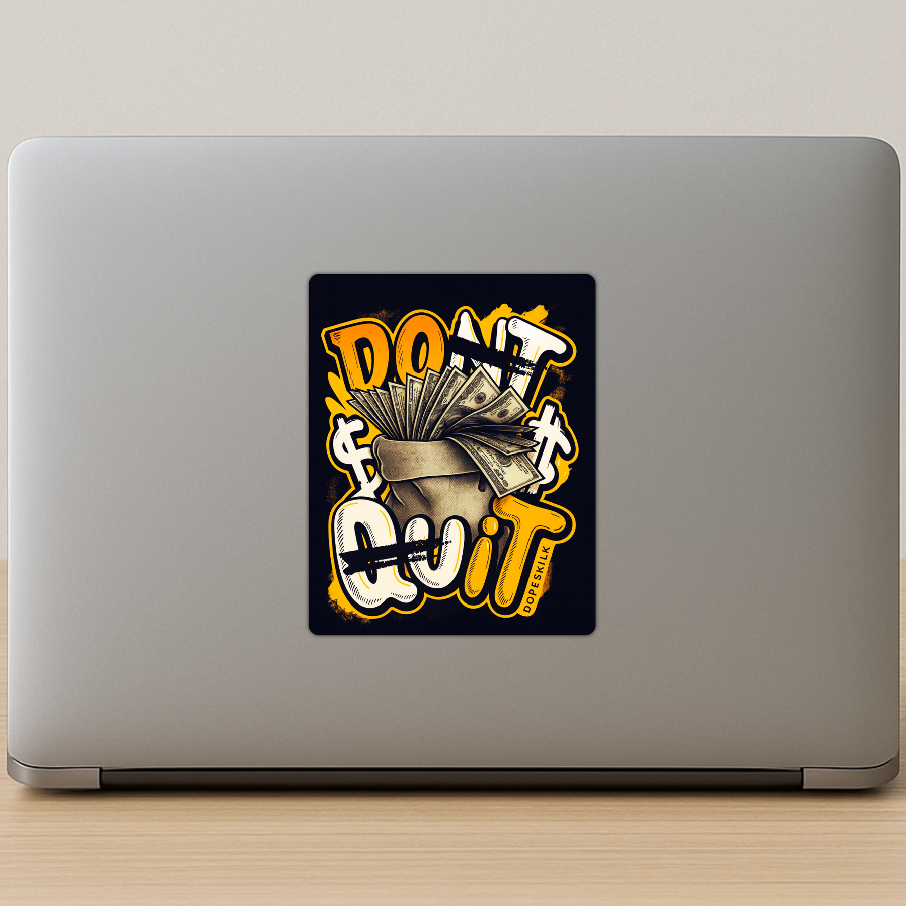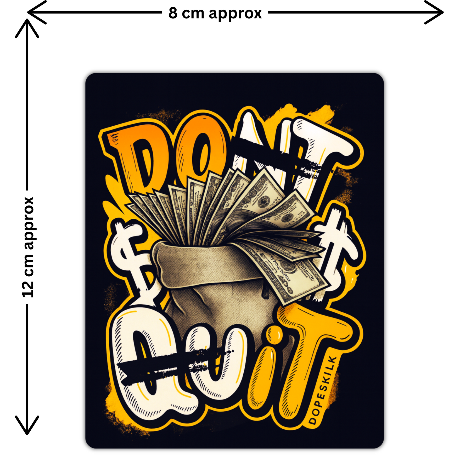 Stay hungry, stay focused with the STIXY Don’t Quit Money Motivation Sticker — a bold reminder that success belongs to those who never give up. Featuring striking yellow-black typography and a bag full of cash, this sticker fuels your daily grind with pure motivation and attitude.