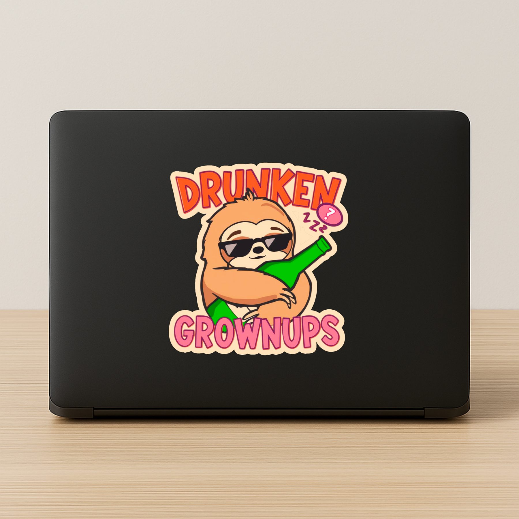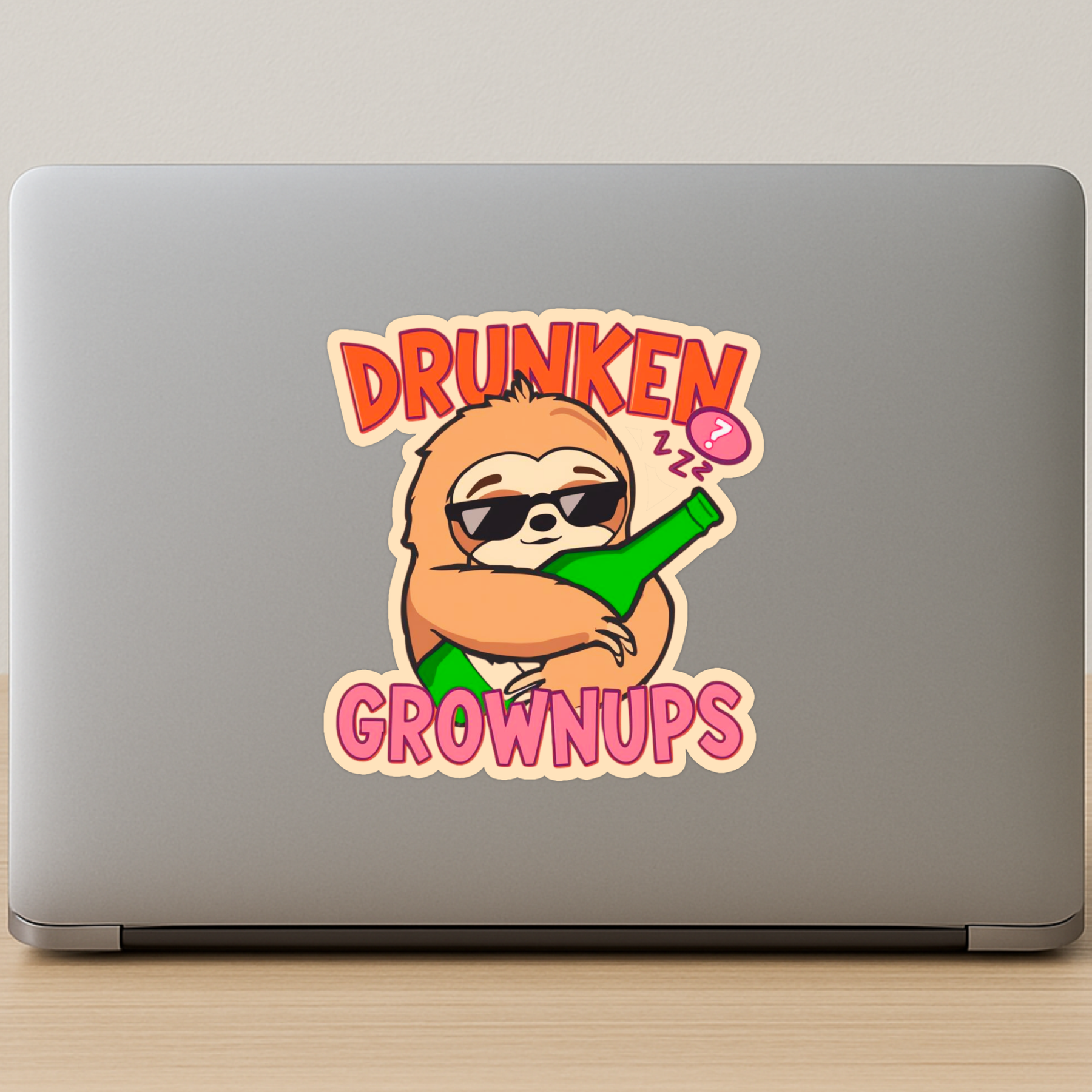 DRUNKEN GROWNUPS SLOTH STICKER – FUNNY ANIMAL SERIES