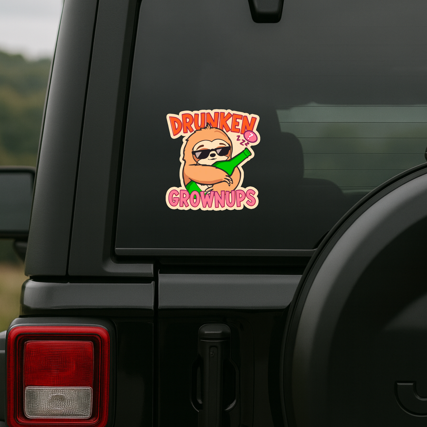 Bring humor and chill vibes to your ride or workspace with the STIXY Drunken Grownups Sticker, featuring a lazy sloth in shades hugging a bottle — the ultimate mood for grown-up chaos and weekend fun! This hilarious sticker adds a splash of attitude wherever you place it.