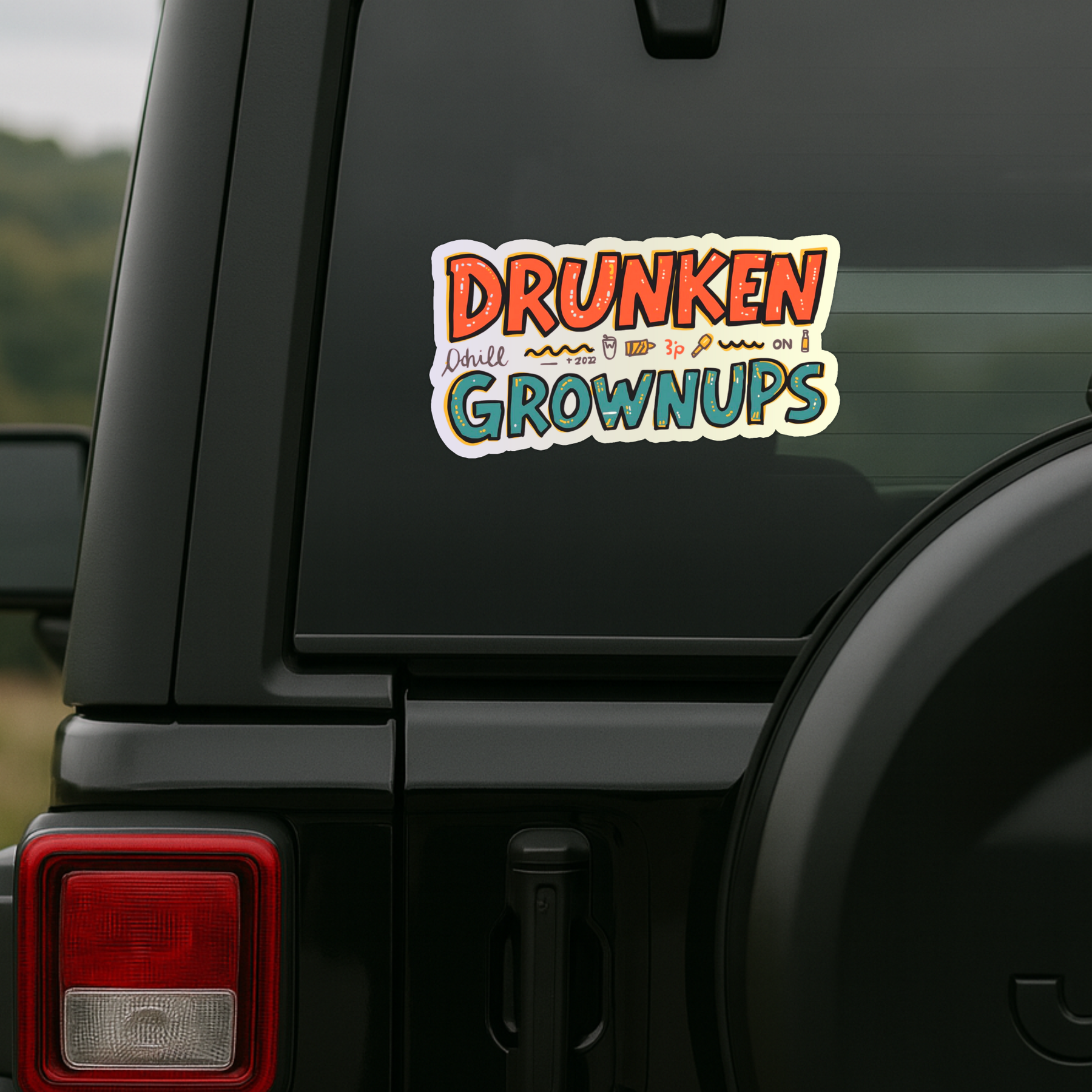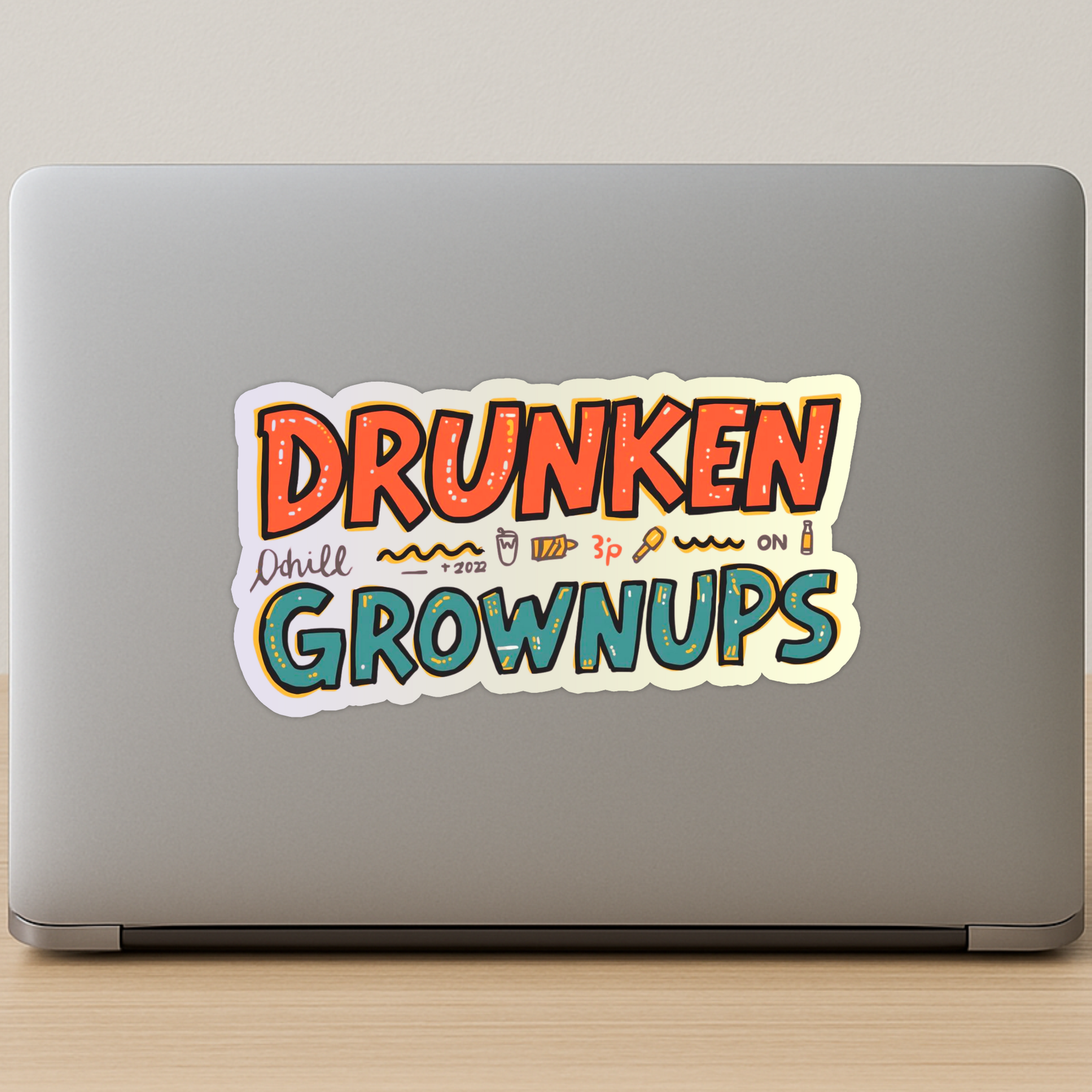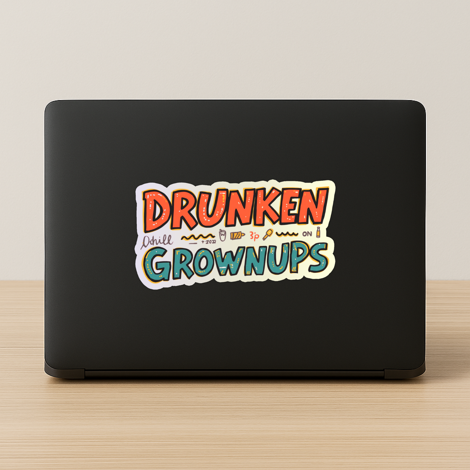 Bring your humor to life with the STIXY Drunken Grownups Sticker, a part of our Fun Typo Series made for those who love a little chaos and laughter! With its playful hand-drawn typography and cheeky doodles, this sticker perfectly captures the carefree adult spirit — where good vibes and fun nights never end.