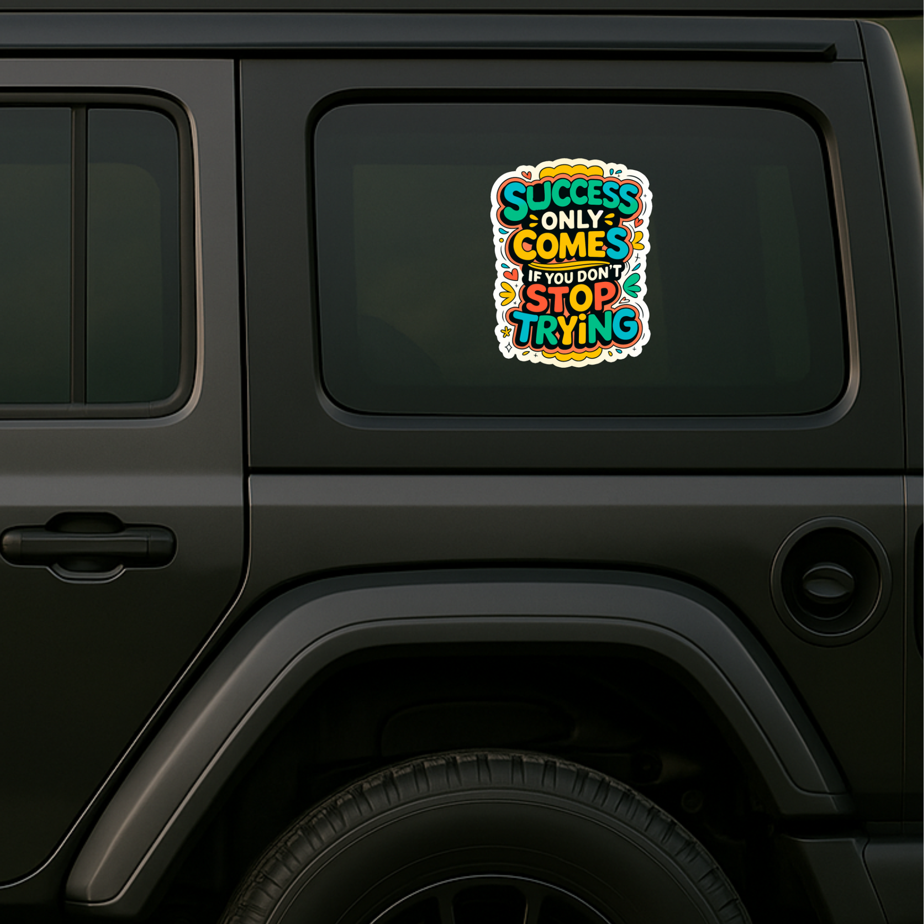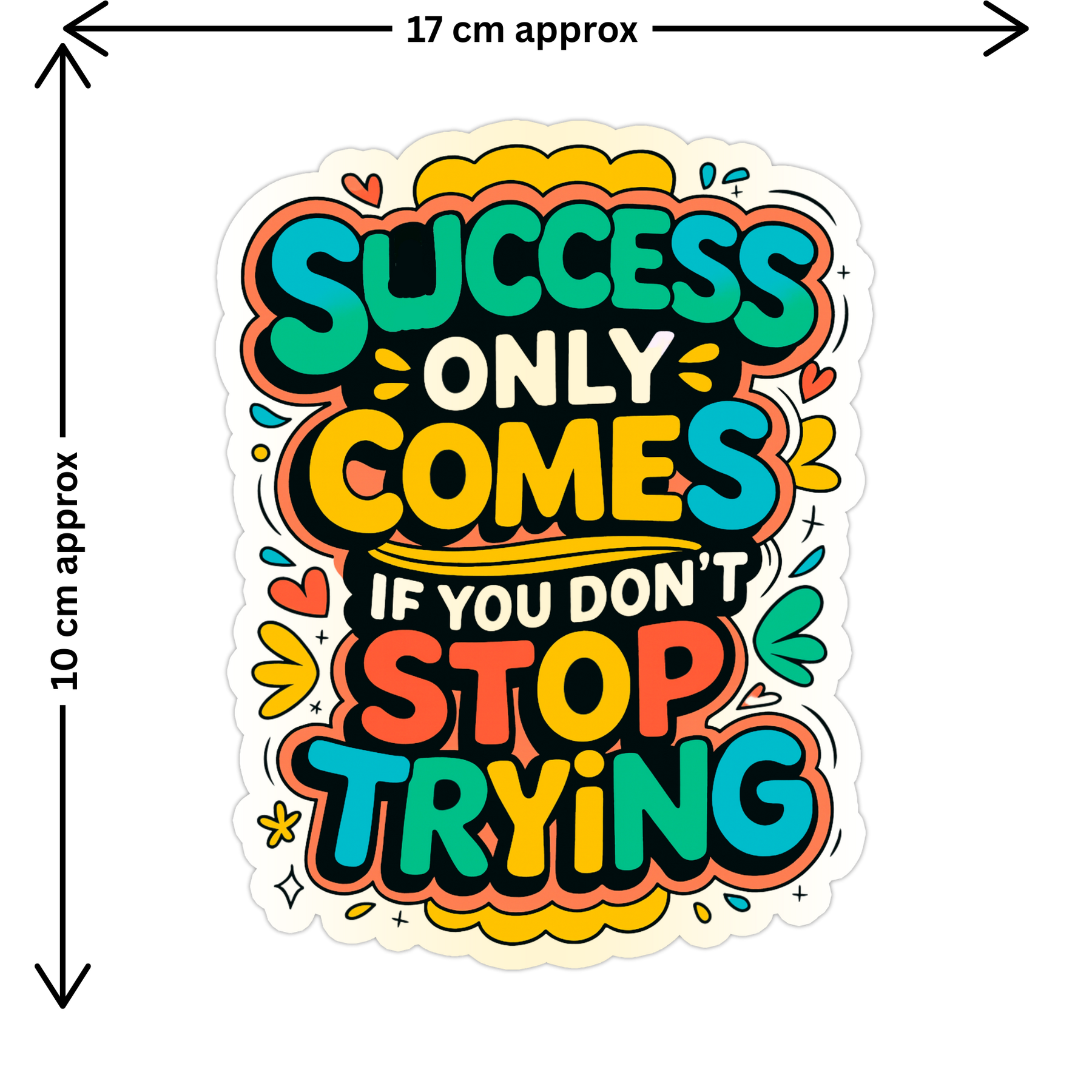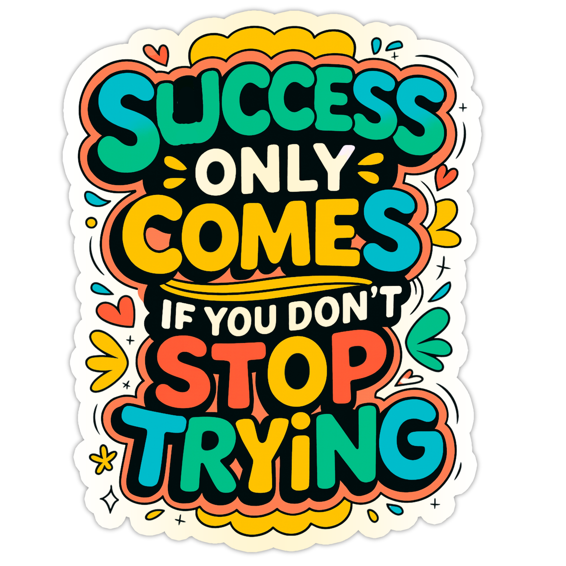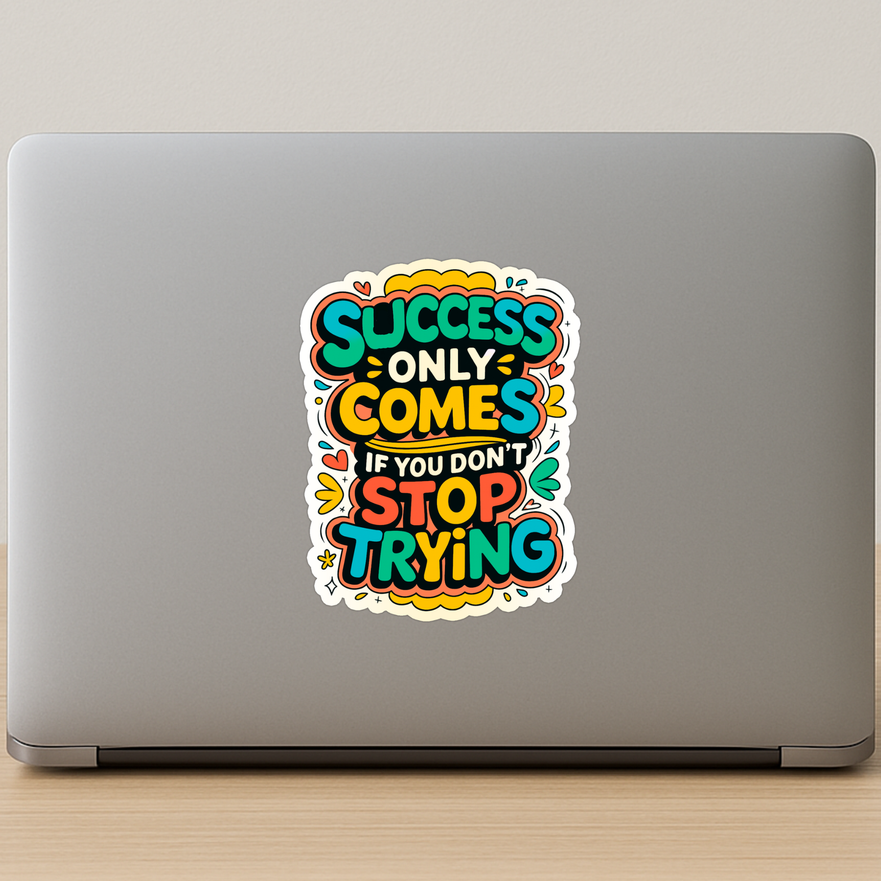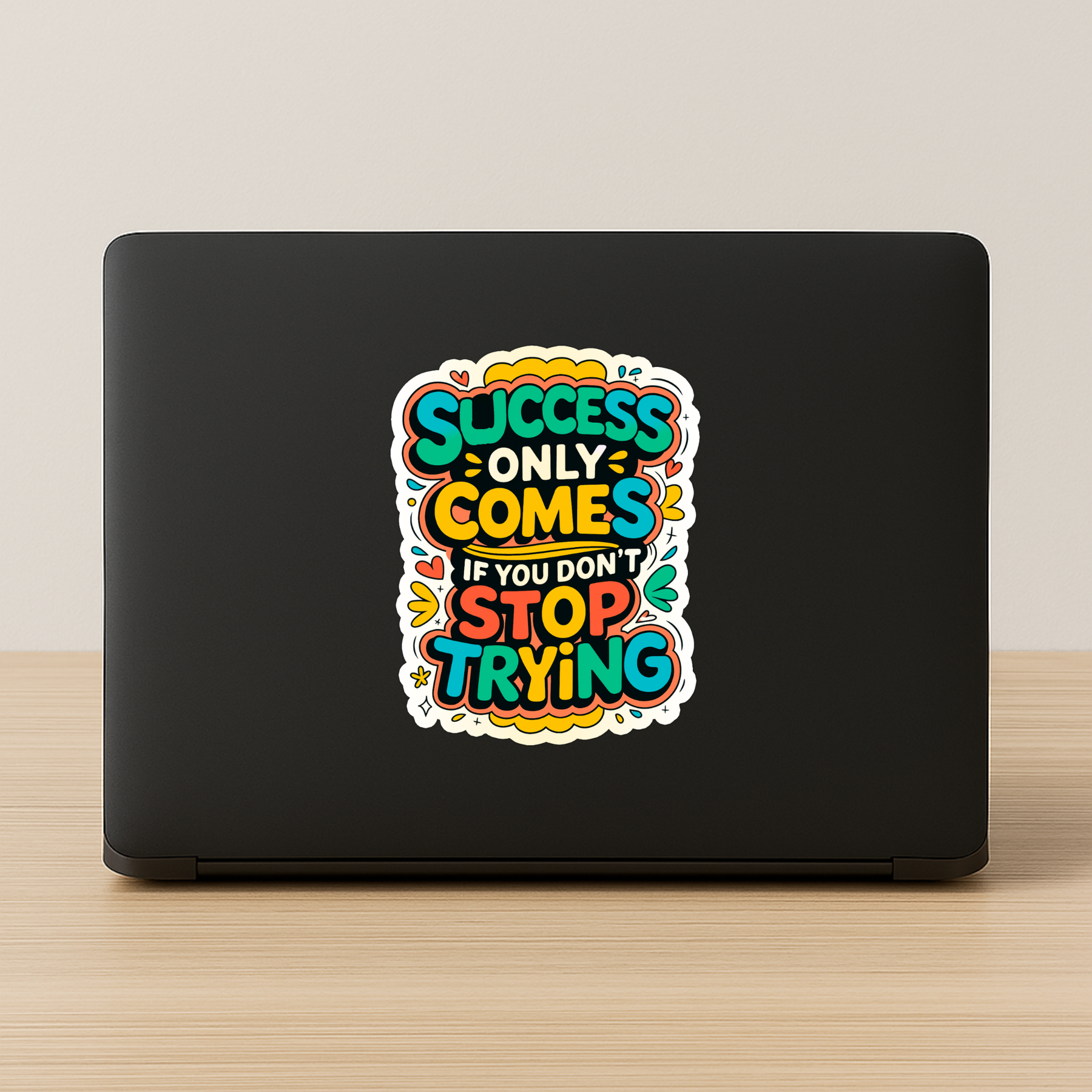 Keep your drive alive with the STIXY Success Only Comes If You Don’t Stop Trying Sticker, a vibrant motivational decal designed to remind you that persistence always pays off. Featuring bold typography, playful shapes, and cheerful colors — this sticker radiates positivity and focus wherever you place it.