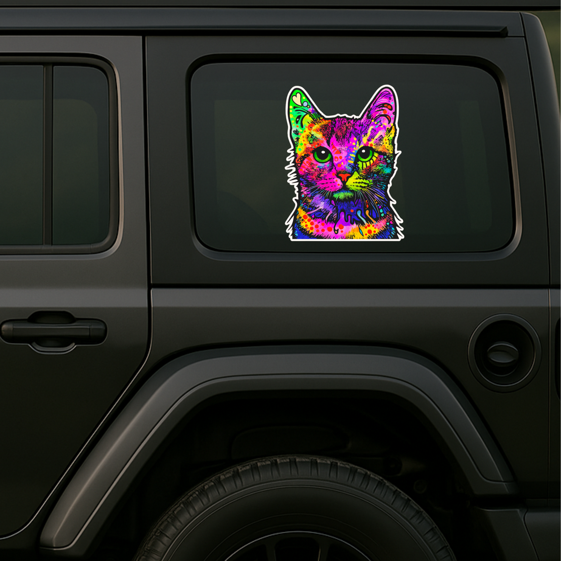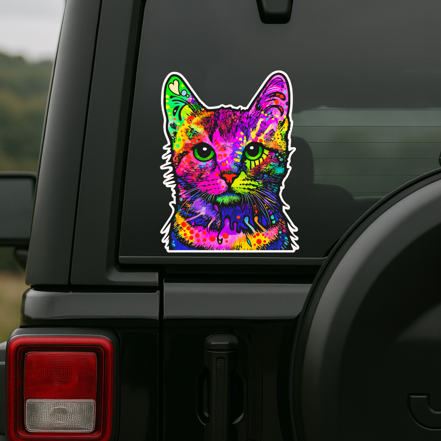 Unleash your wild, colorful side with the STIXY Vibrant Cat Sticker, designed in a stunning neon art style that turns every surface into a canvas of energy and attitude. Featuring bright psychedelic hues of pink, yellow, green, and blue, this cat sticker radiates confidence and creativity — perfect for animal lovers and art enthusiasts alike.