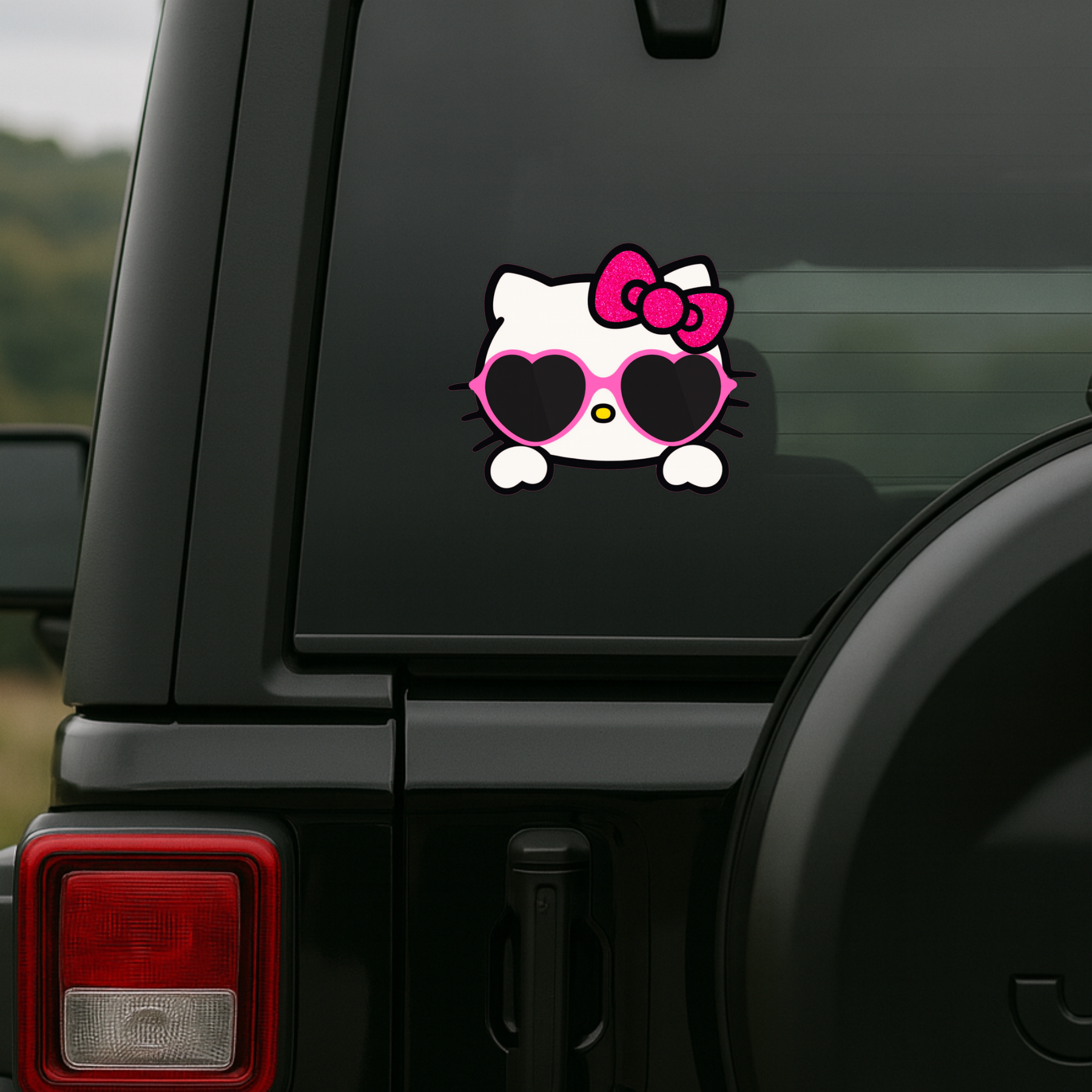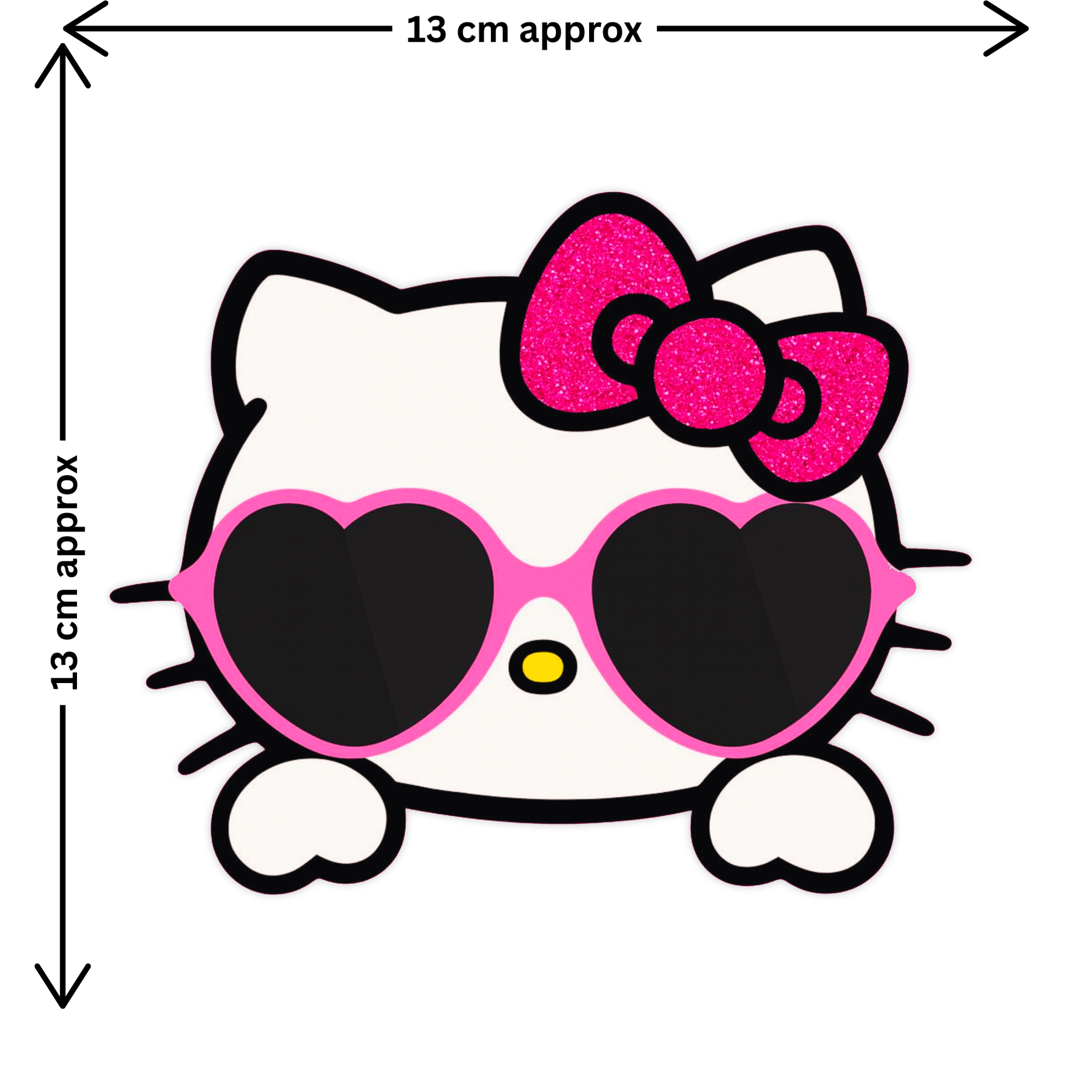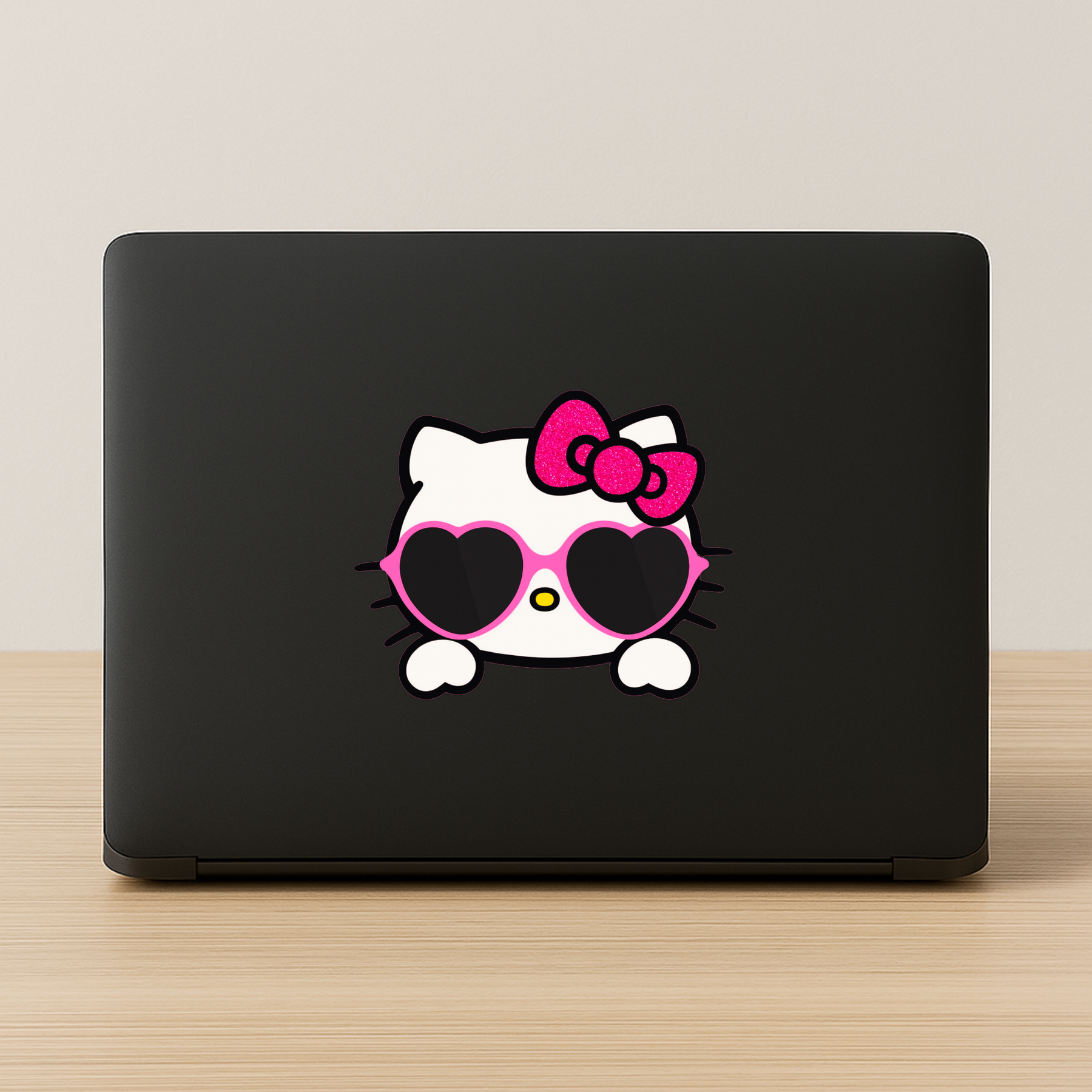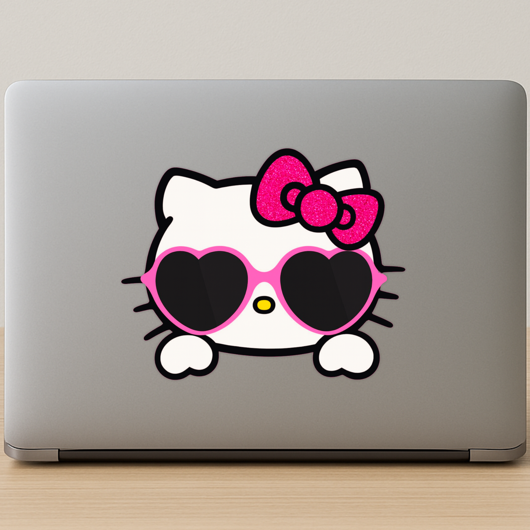 Add instant cuteness to your belongings with the STIXY Cute Kitty with Heart Sunglasses Sticker, featuring an adorable kitty face with a sparkling pink bow and matching heart-shaped shades. Designed with vibrant colors and a glossy glitter finish, this sticker brings playful charm to any surface — perfect for laptops, bottles, diaries, scooters, or mirrors.