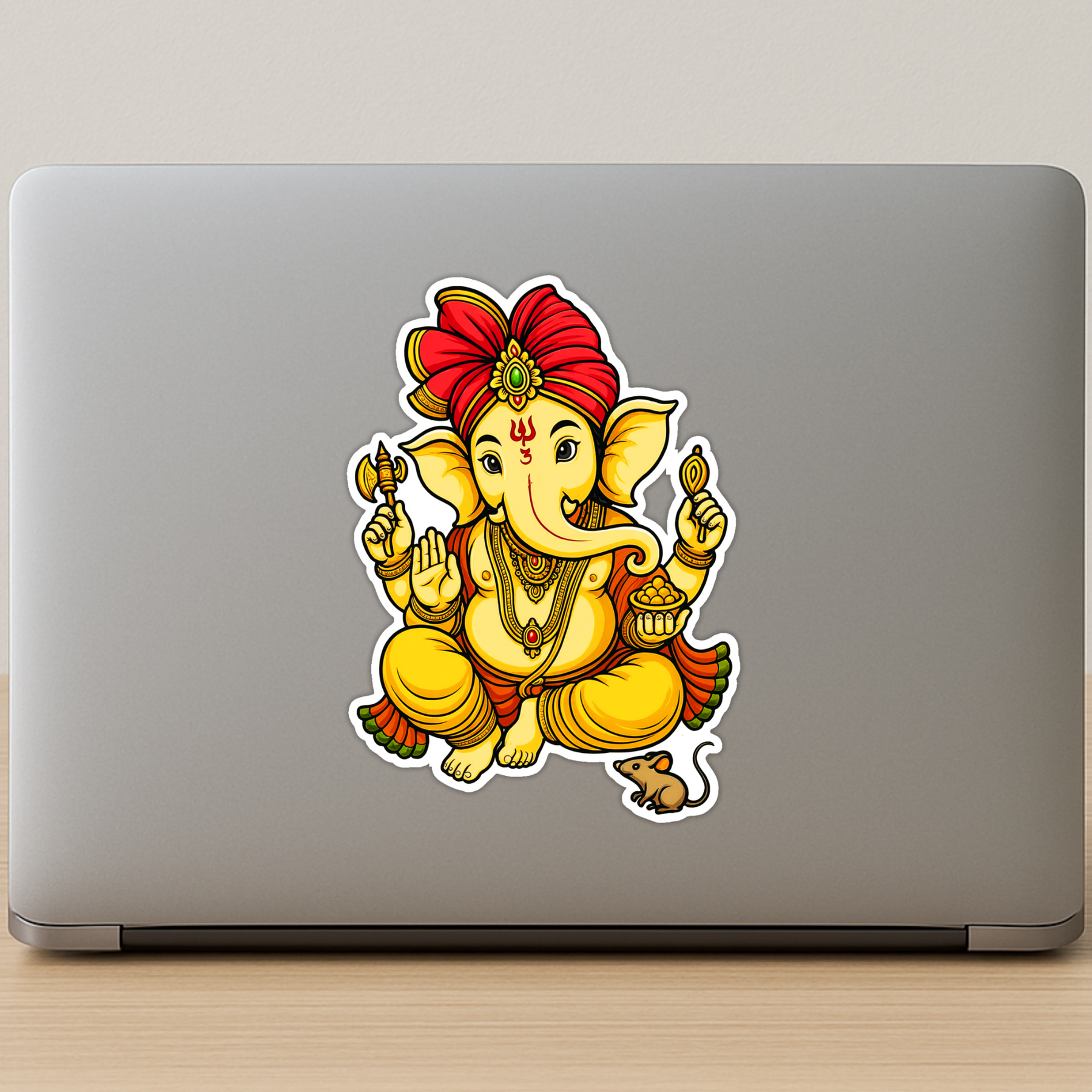 Bring blessings and positivity wherever you go with the STIXY™ Waterproof Lord Ganesha Sticker. Designed with vibrant colors and intricate detailing, this sticker beautifully depicts Ganpati Bappa sitting gracefully with his symbolic mouse companion. Perfect for your car, bike, laptop, water bottle, diary, or home décor, it adds divine charm while spreading good vibes.