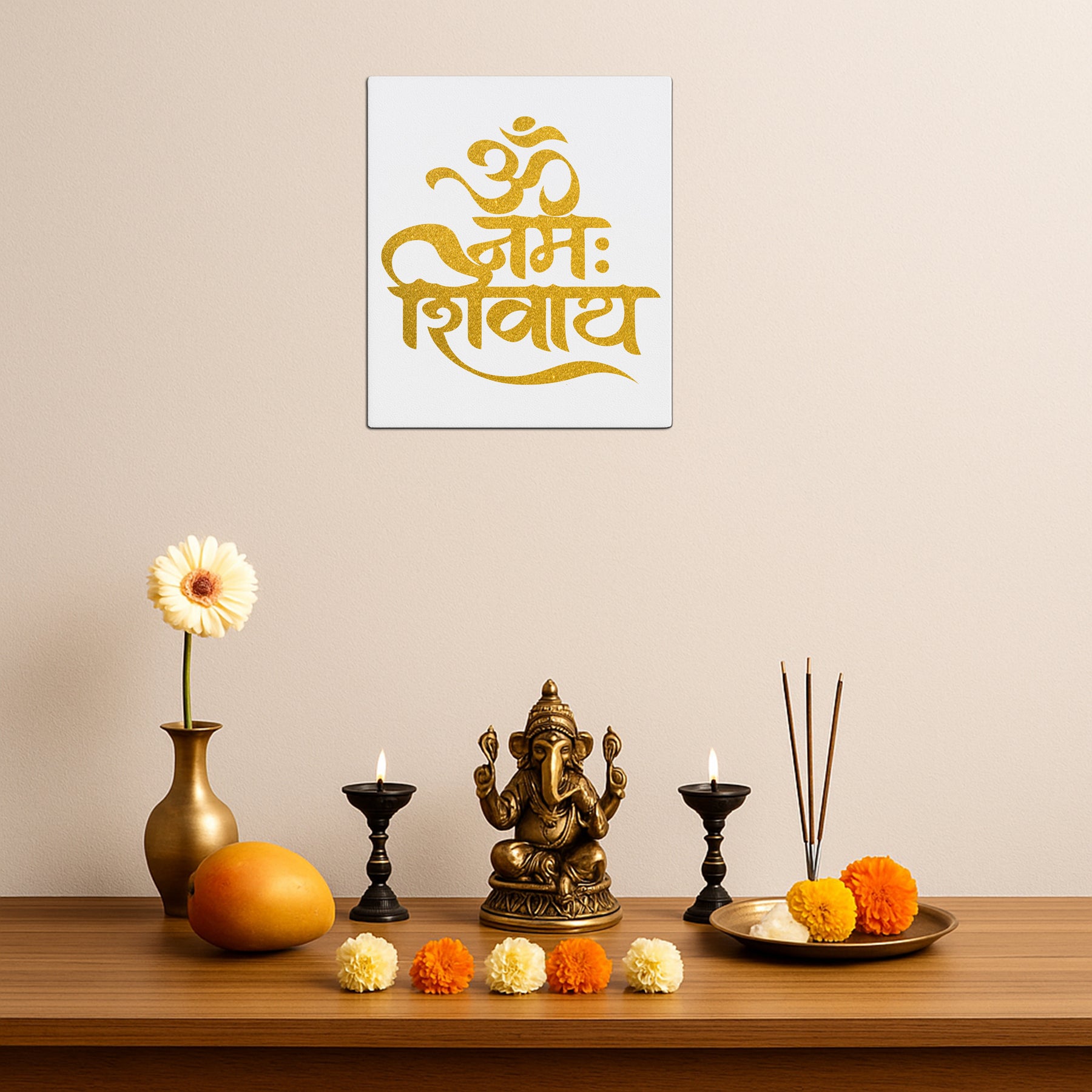 Let your space radiate divine energy with this golden glitter vinyl Om Namah Shivay wall frame. This sacred Shiva mantra is known to bring peace, focus, and spiritual strength. Whether for daily meditation, pooja rituals, or simply to keep positive vibes around you — this artwork says it all.