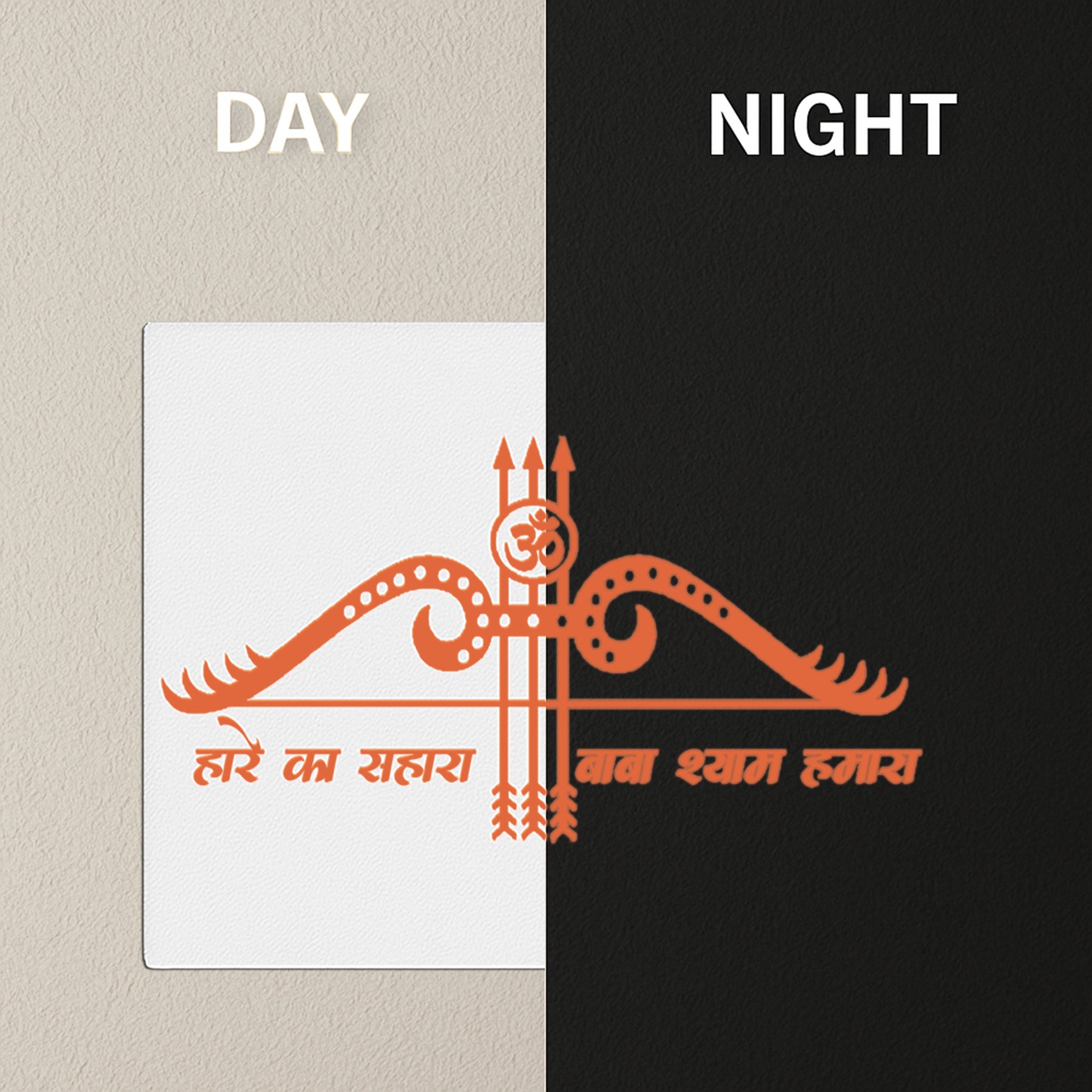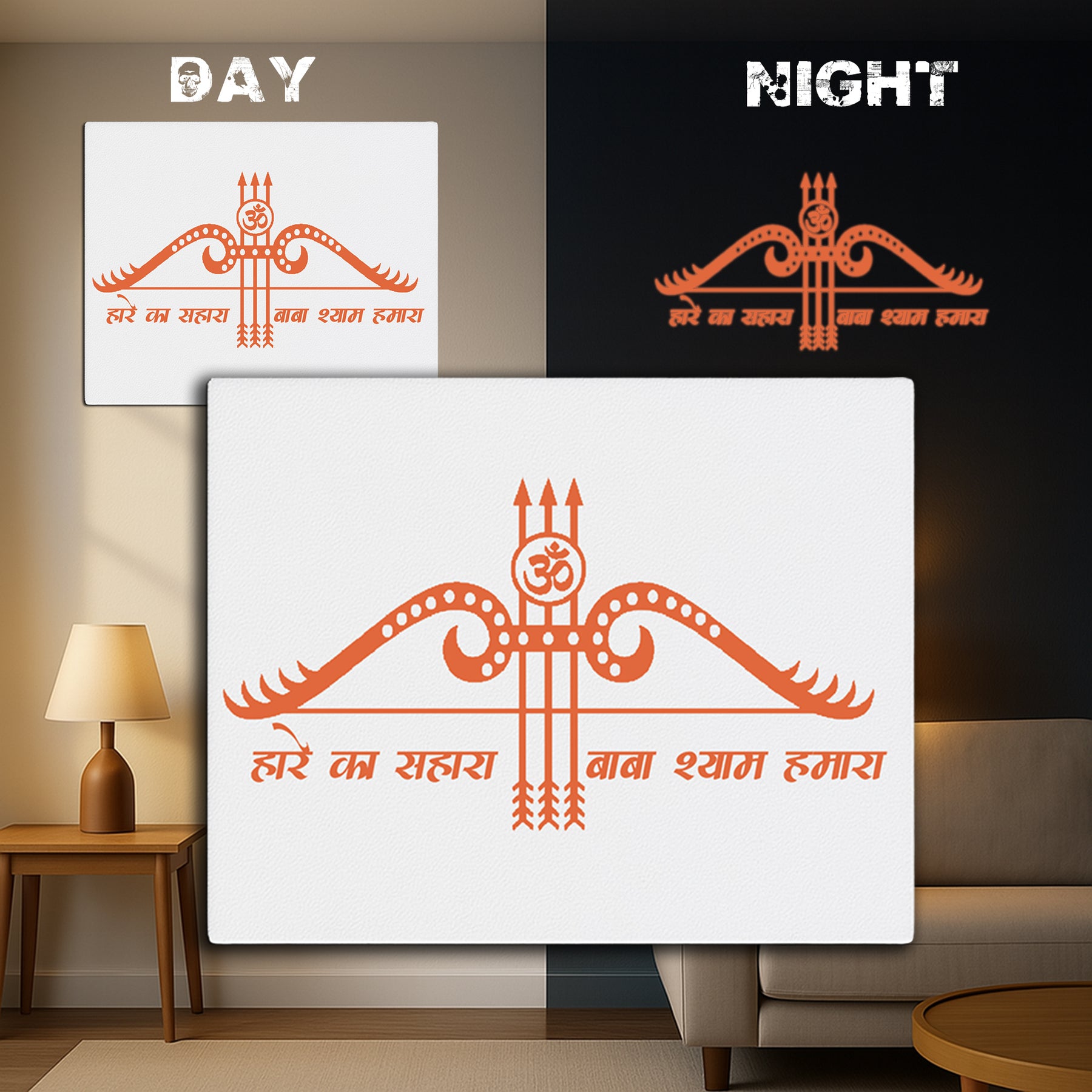 Infuse your home with strength, protection, and hope through this radiant glow-in-the-dark frame that reads "हारे का सहारा बाबा श्याम हमारा." Designed with an artistic trishul and om symbol, this elegant frame inspires unwavering faith even in tough times. It glows beautifully in the dark after absorbing sunlight, making it a spiritually uplifting decor piece for your entrance, living space, or temple corner.
