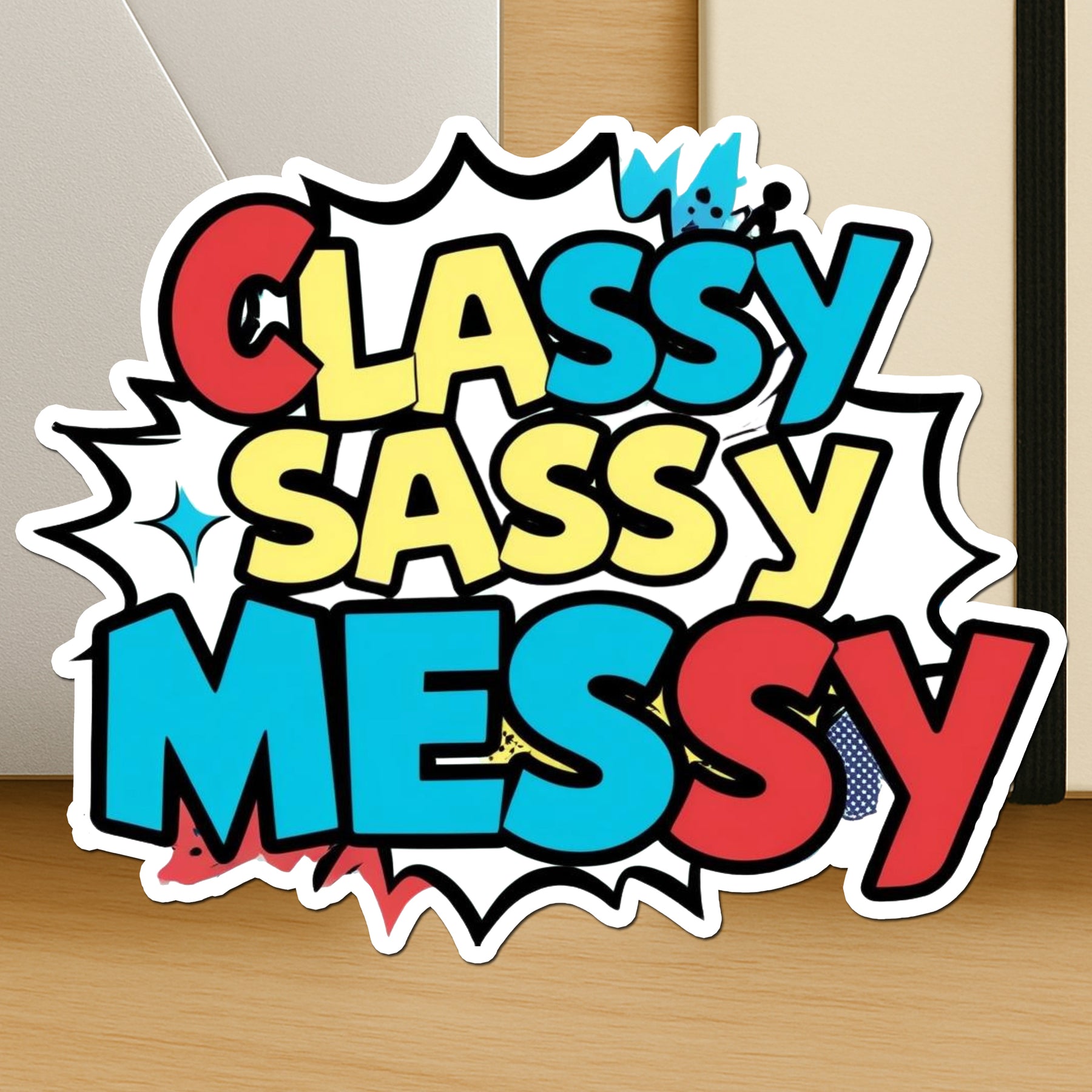 Embrace your beautifully layered personality with our “Classy Sassy Messy” Vinyl Sticker, designed in loud comic-style fonts and primary color pops that demand attention. Whether you're elegant on the outside, spicy in spirit, or delightfully chaotic underneath — this sticker captures it all with humor and flair. Made from durable waterproof vinyl with a glossy finish, it's perfect for your laptop, mirror, diary, or tablet. Easy to peel and fade-resistant, it’s a go-to for anyone who proudly balances grace with mischief — because why be one thing when you can be all of them?