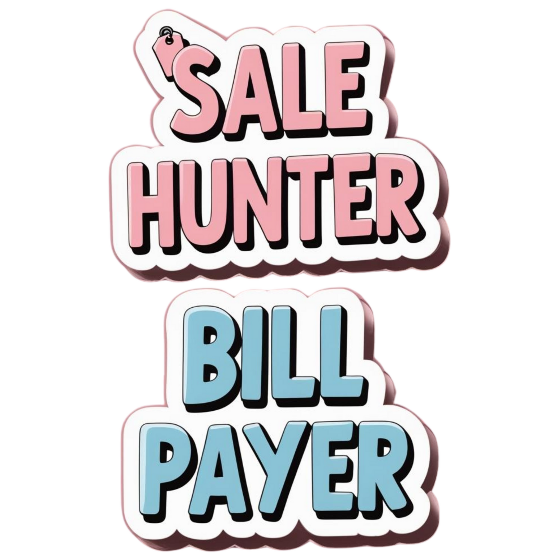 Add a playful twist to your phone with the STIXY™ "SALE HUNTER" & "BILL PAYER" Waterproof Sticker Set. Perfect for couples, these quirky designs speak volumes — one is always chasing sales, the other’s handling the bills!