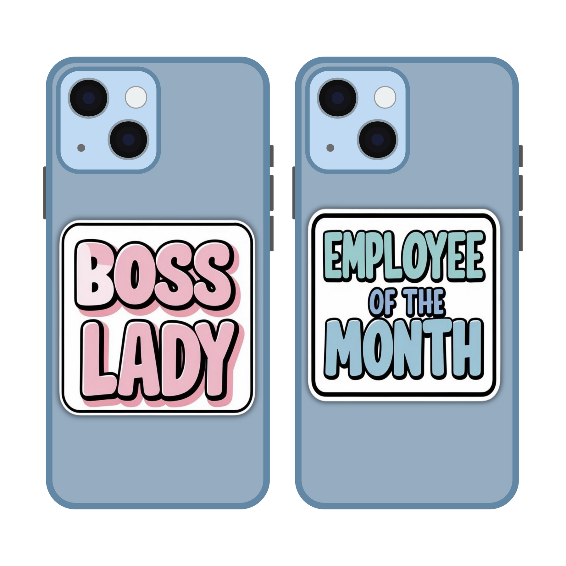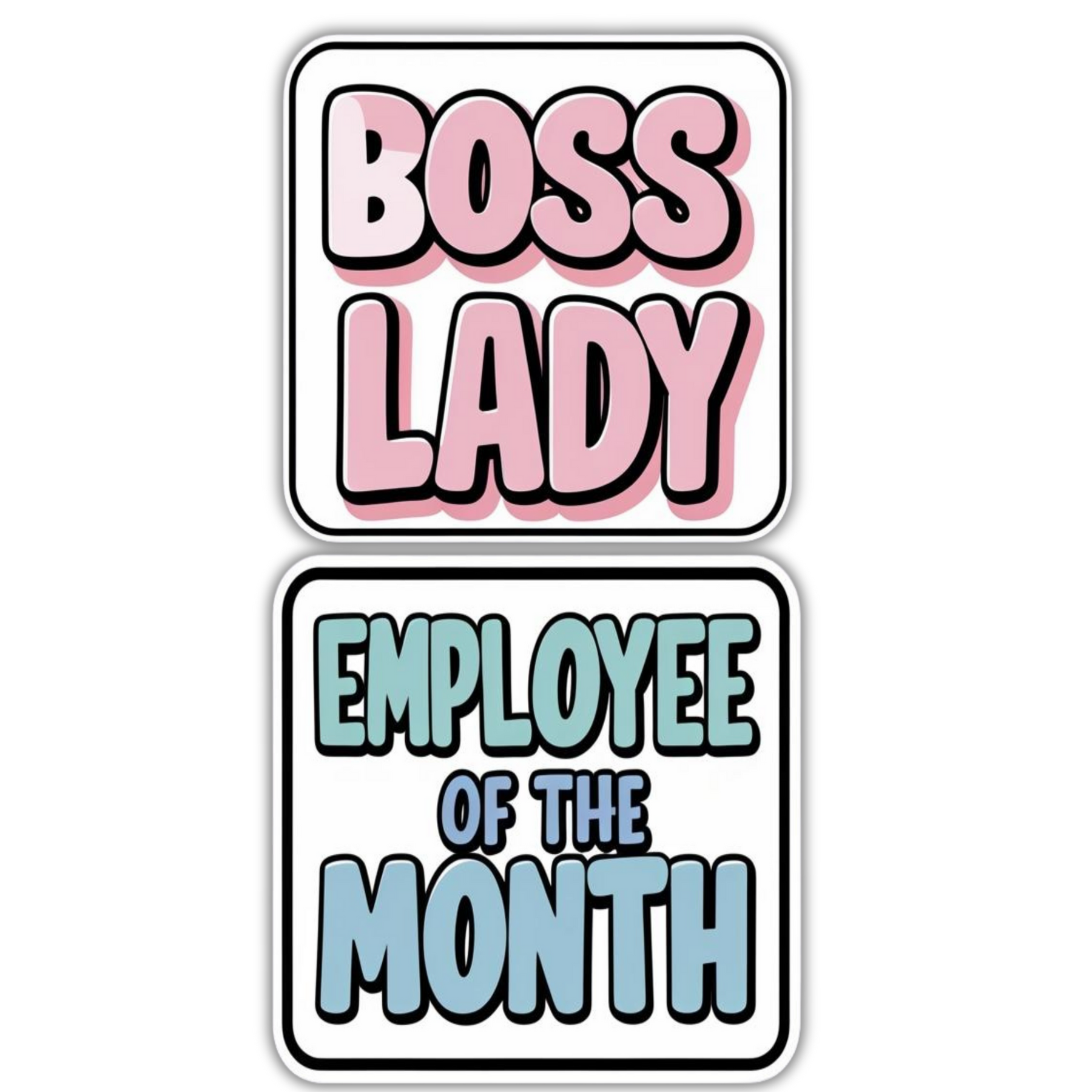Bring humor and personality to your workspace with the STIXY™ "BOSS LADY" & "EMPLOYEE OF THE MONTH" Waterproof Sticker Set. Perfect for office buddies, work teams, or even home desks, these bold and colorful designs make a statement wherever they’re placed.