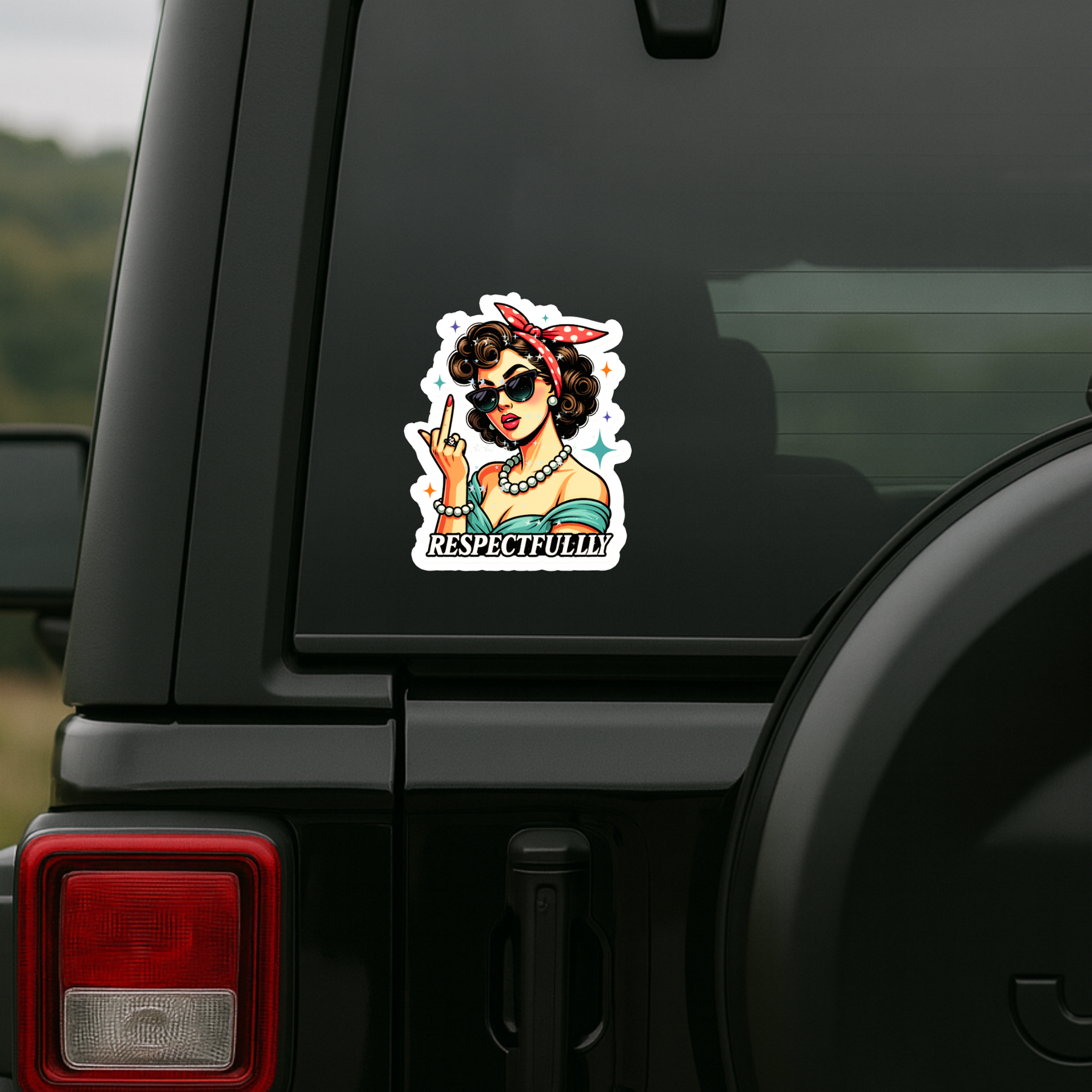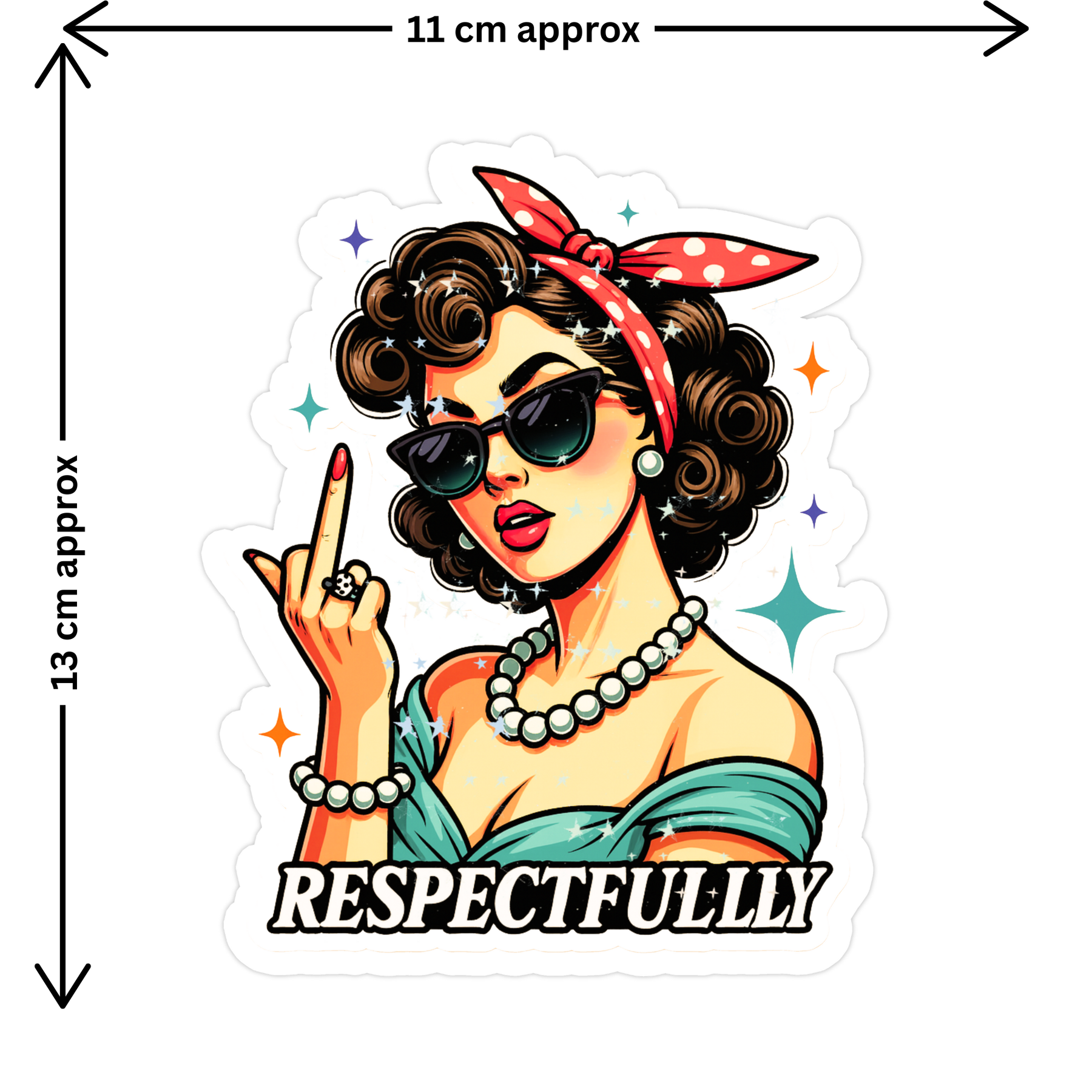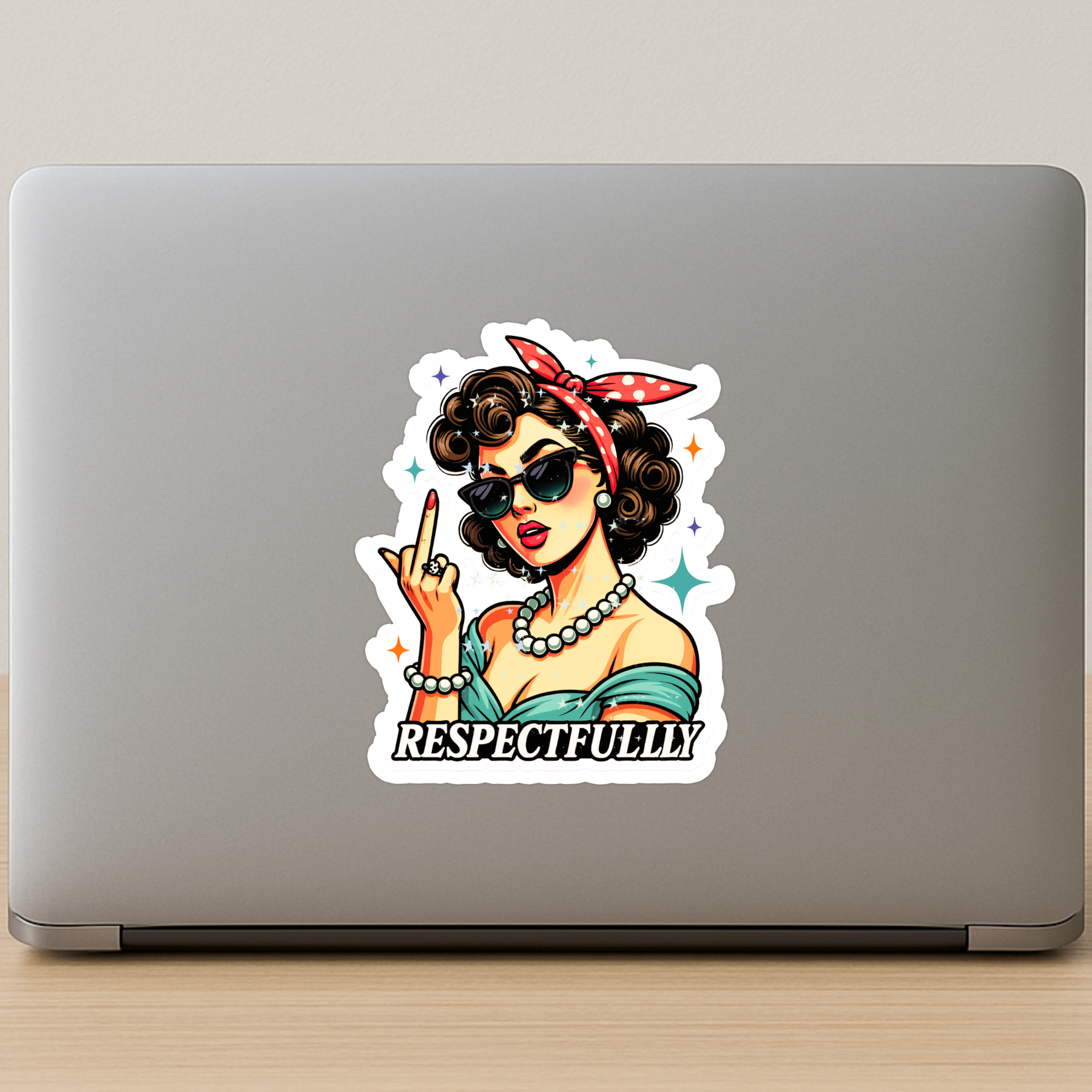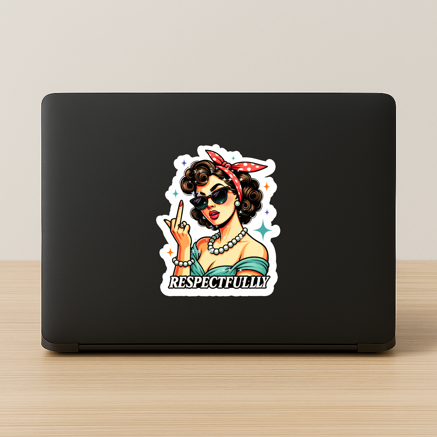 Say it with style — and attitude! The STIXY “Respectfully” Sticker from the Retro Attitude Collection blends bold expression with vintage glam. Featuring a confident retro woman in sunglasses and pearls, this design perfectly captures the essence of modern sass with an old-school twist. A true statement piece for those who stand their ground — respectfully, of course.