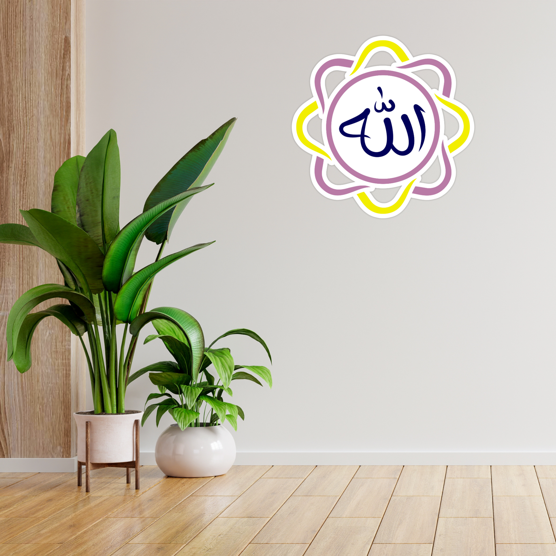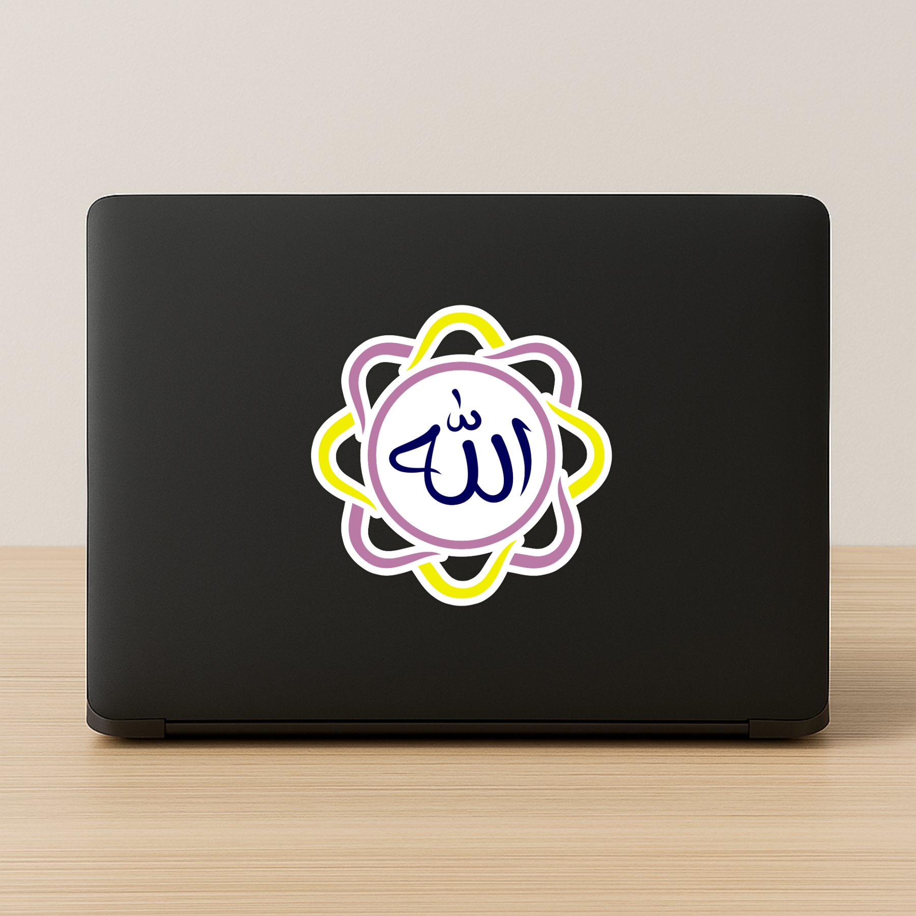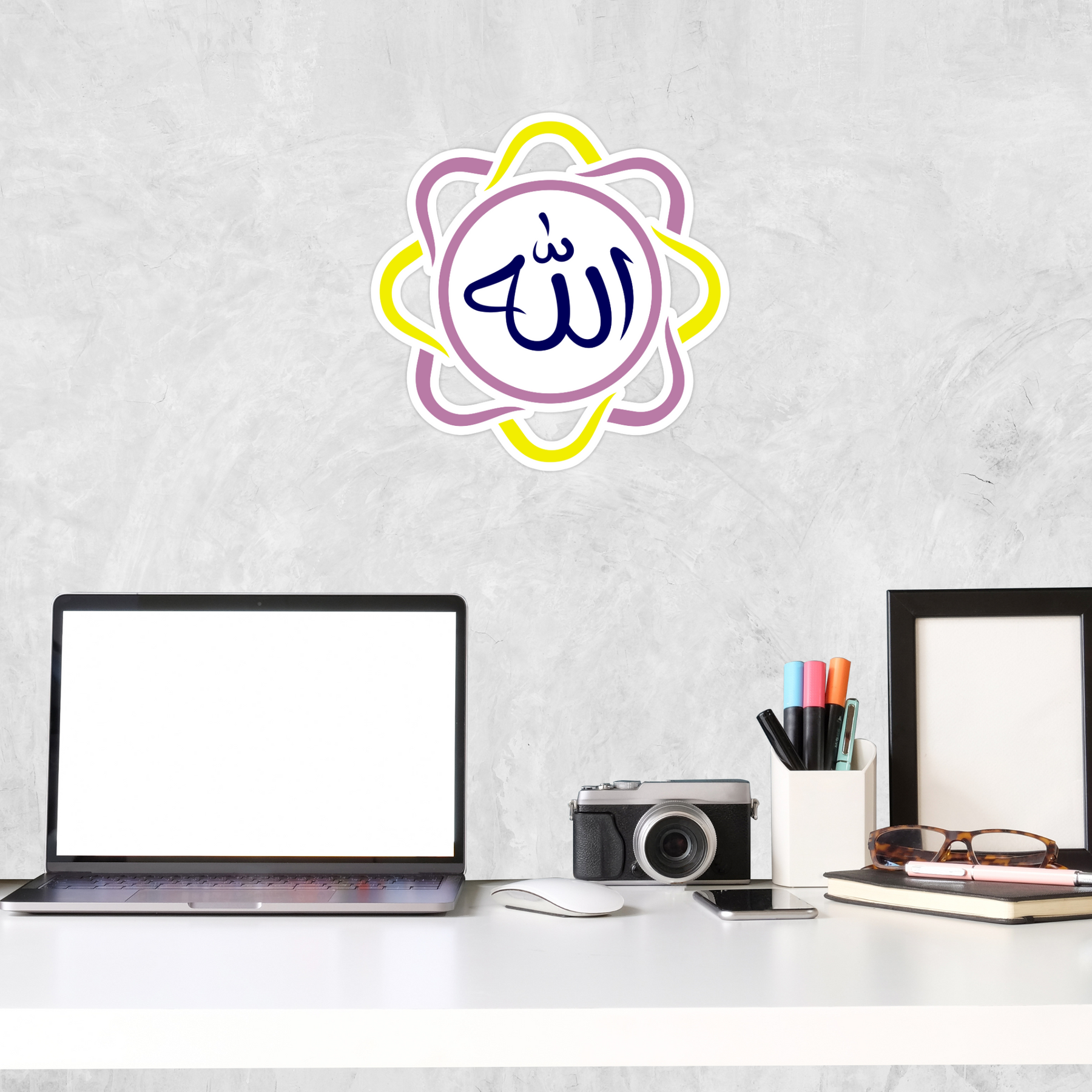 Show your faith with grace using this beautifully designed "Allah" Arabic calligraphy sticker, set within a pastel floral geometric border. A perfect piece for mirrors, notebooks, car dashboards, or spiritual gift sets — radiating elegance and reverence.
