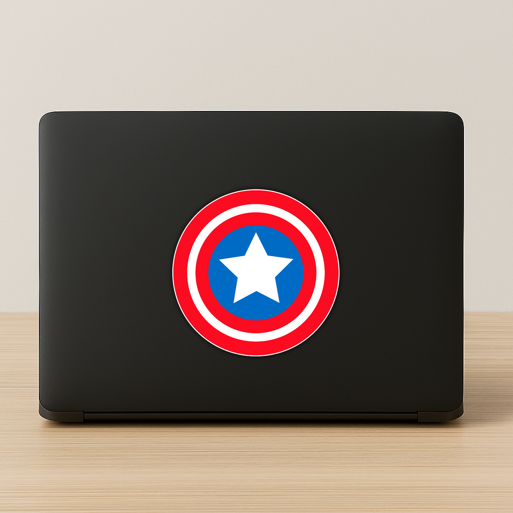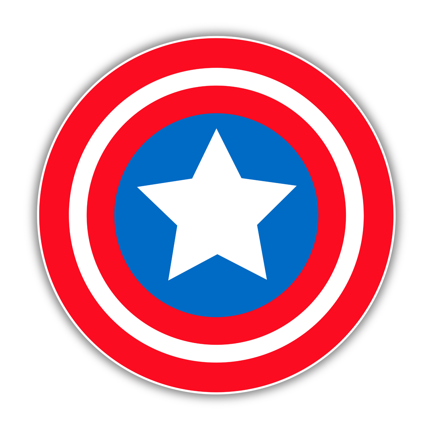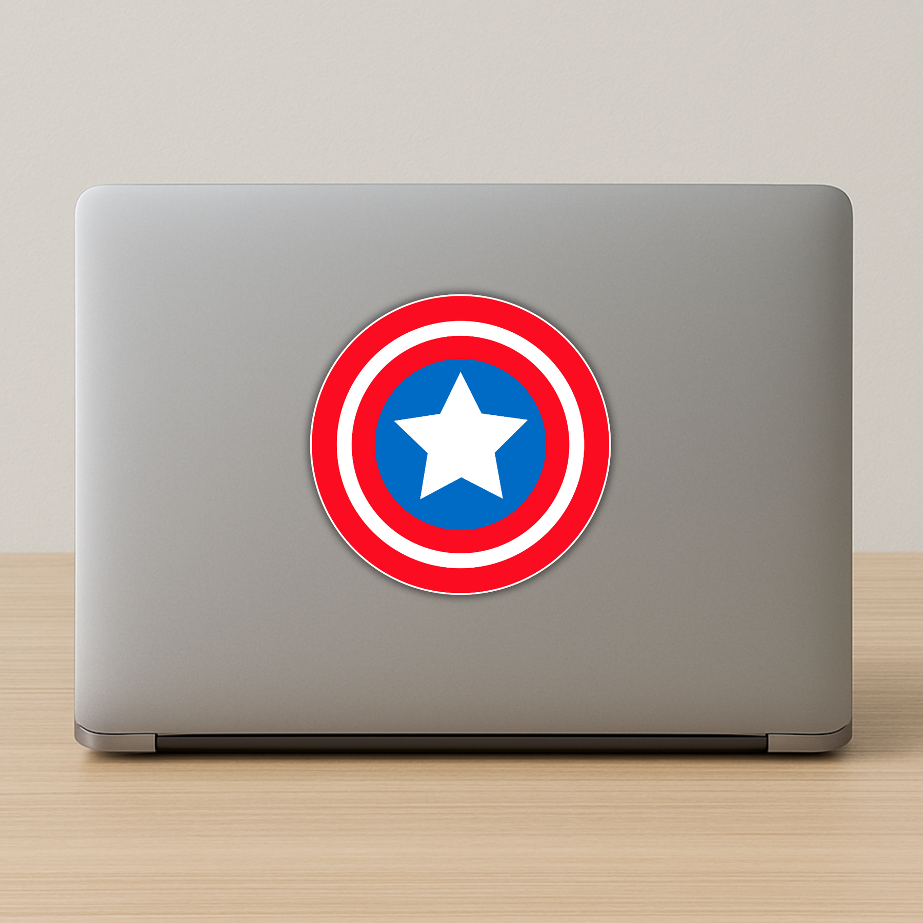 Stand tall with this bold Captain Hero Shield sticker, featuring the classic red, white, and blue concentric circles with a central star. Inspired by legendary superhero gear, this sticker adds iconic energy to your laptop, bike, helmet, or water bottle.