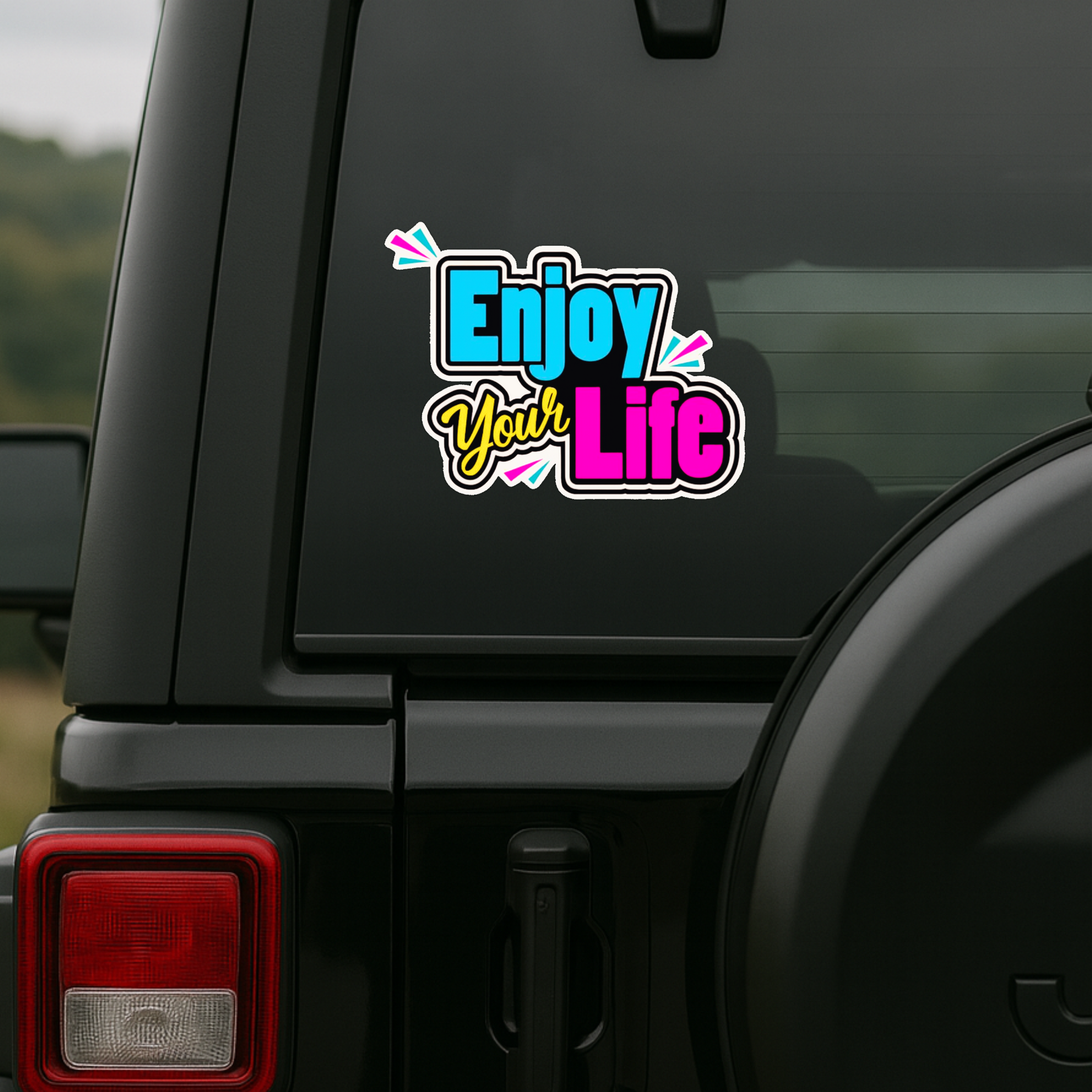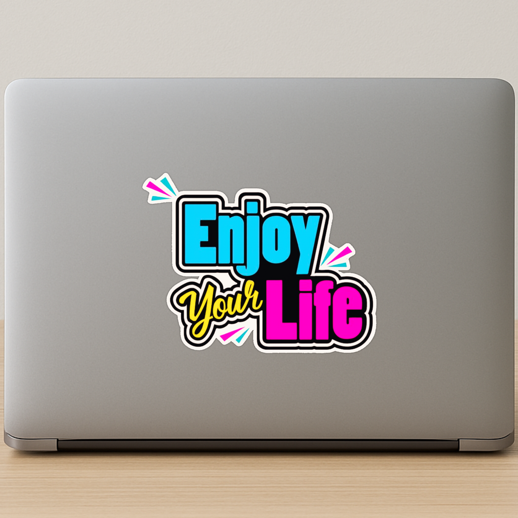 Bring positivity wherever you go with the STIXY Enjoy Your Life Sticker — a vibrant, motivational design that reminds you to live freely and smile every day. Featuring bold typography in neon shades of blue, pink, and yellow, this sticker instantly brightens up any surface with energetic vibes.