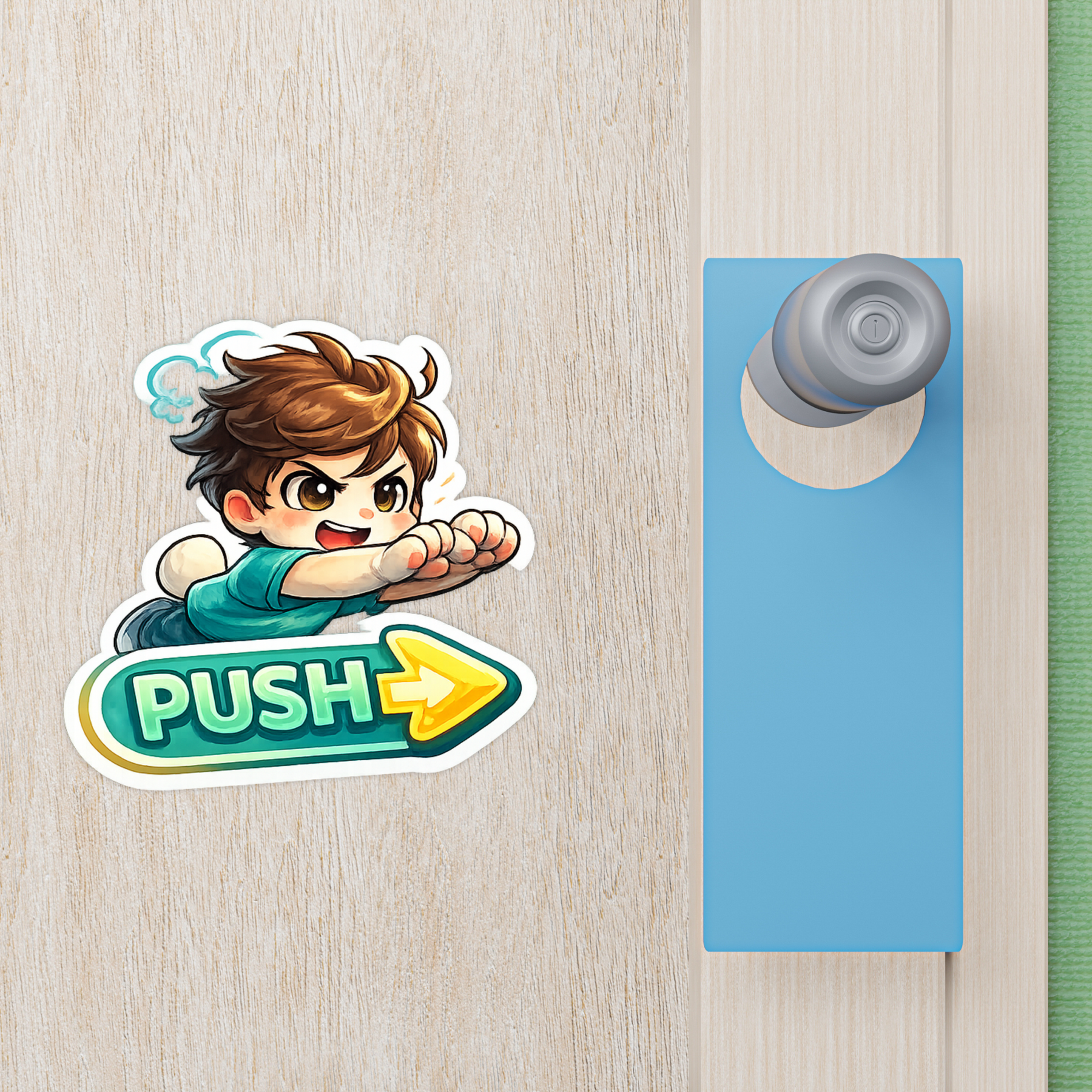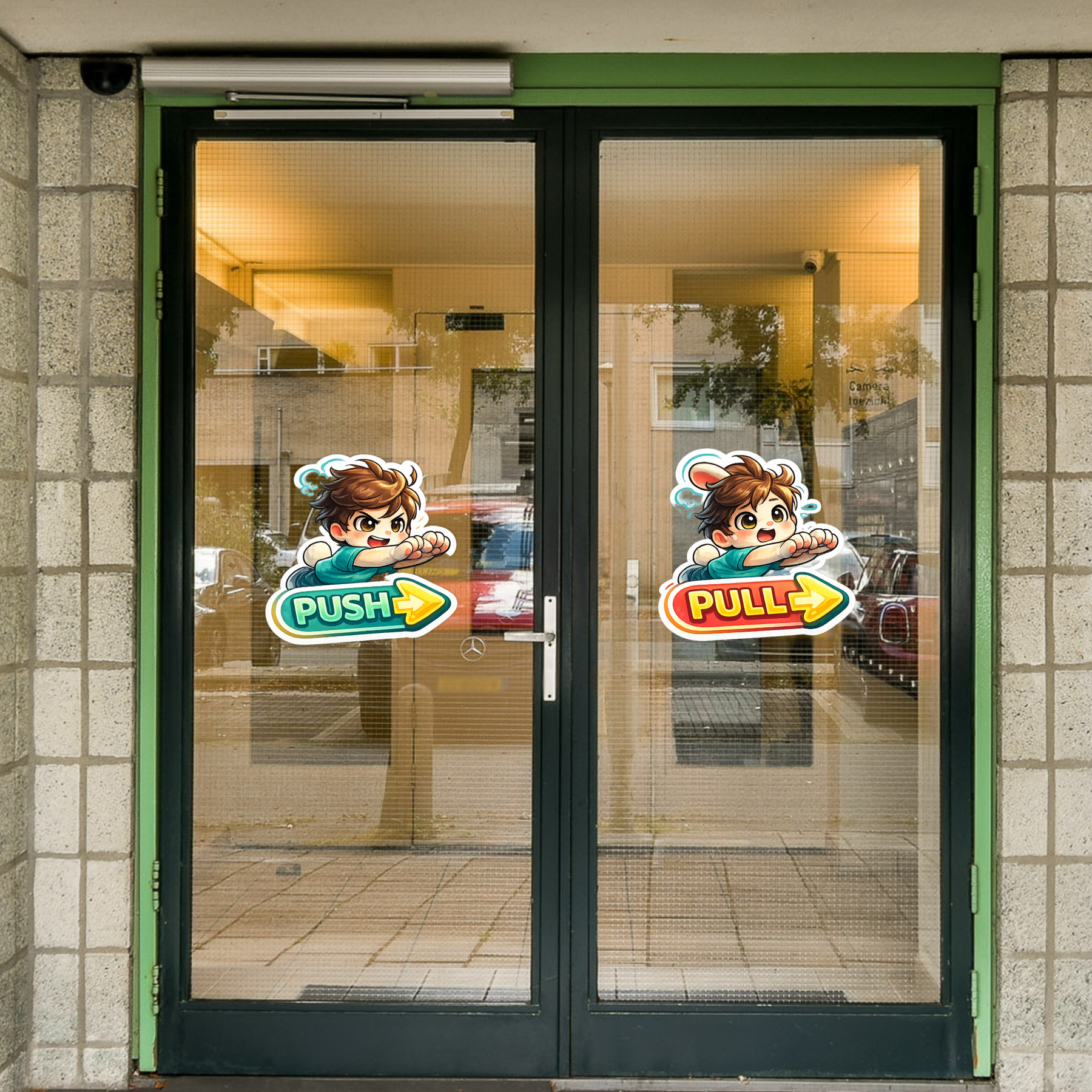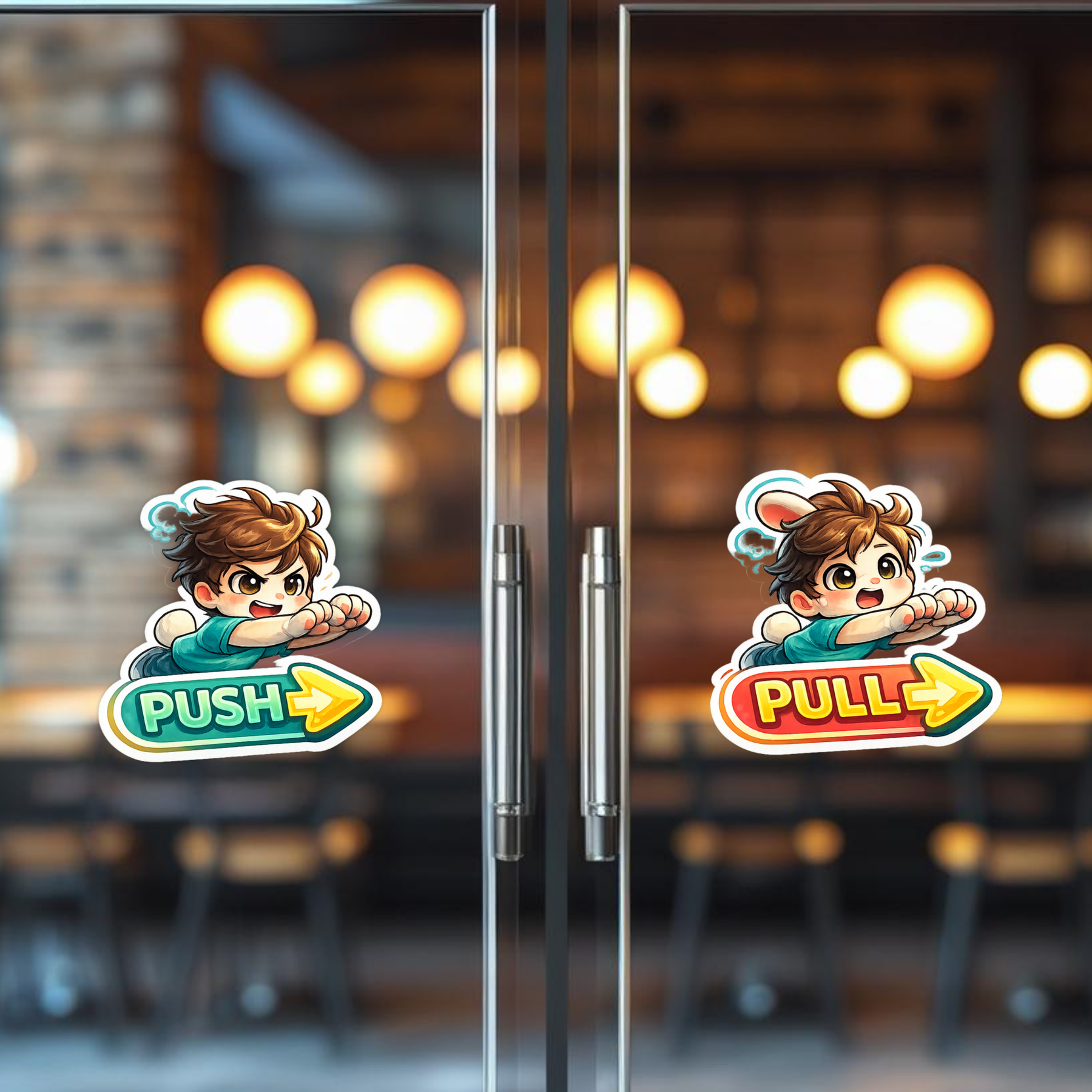 Make door directions fun and crystal clear with this STIXY™ Push & Pull Sticker Set. Designed with playful cartoon characters and bold arrows, these stickers instantly guide users while adding a friendly, modern look to your space. The premium matte finish ensures a clean, non-glossy appearance that blends perfectly with professional and casual interiors.