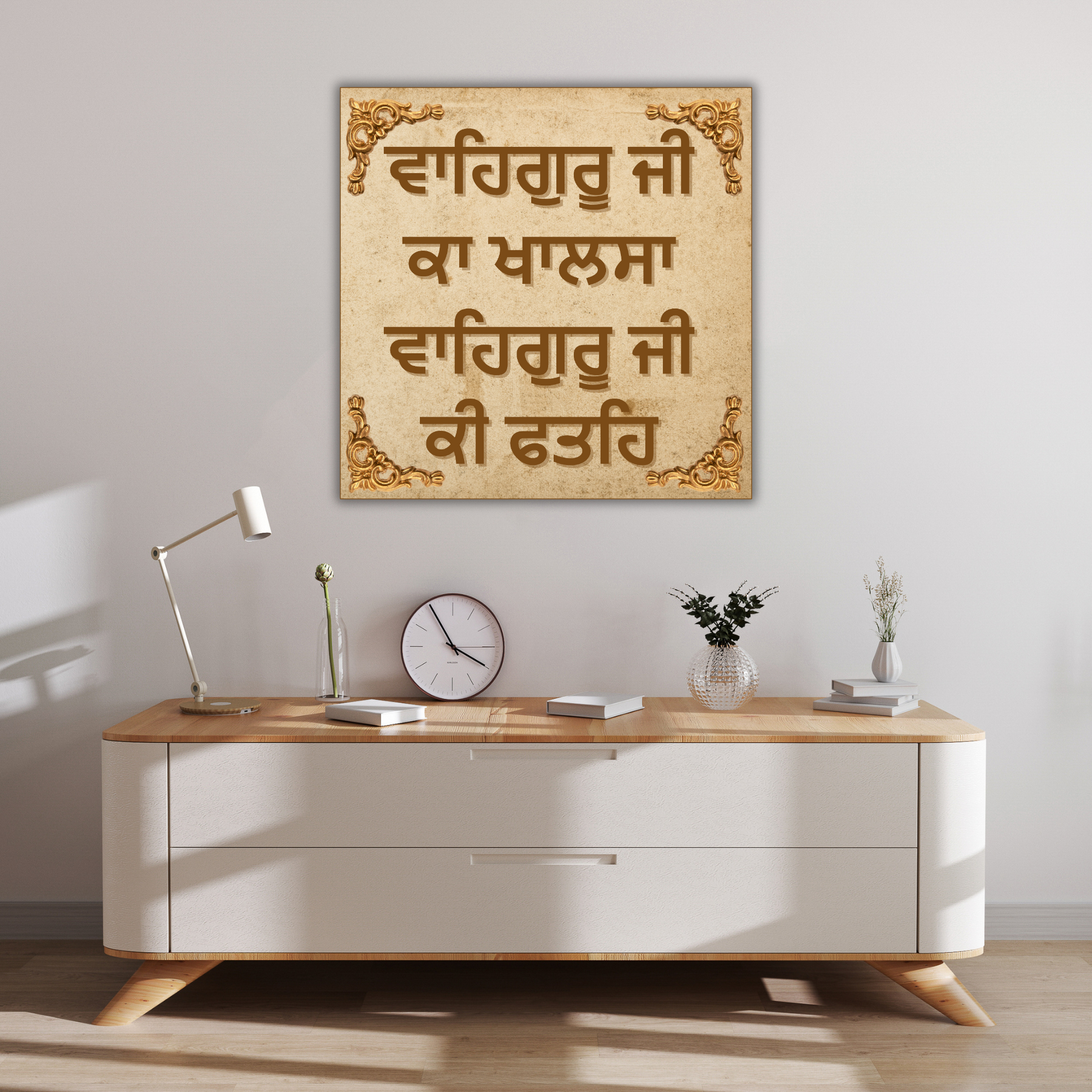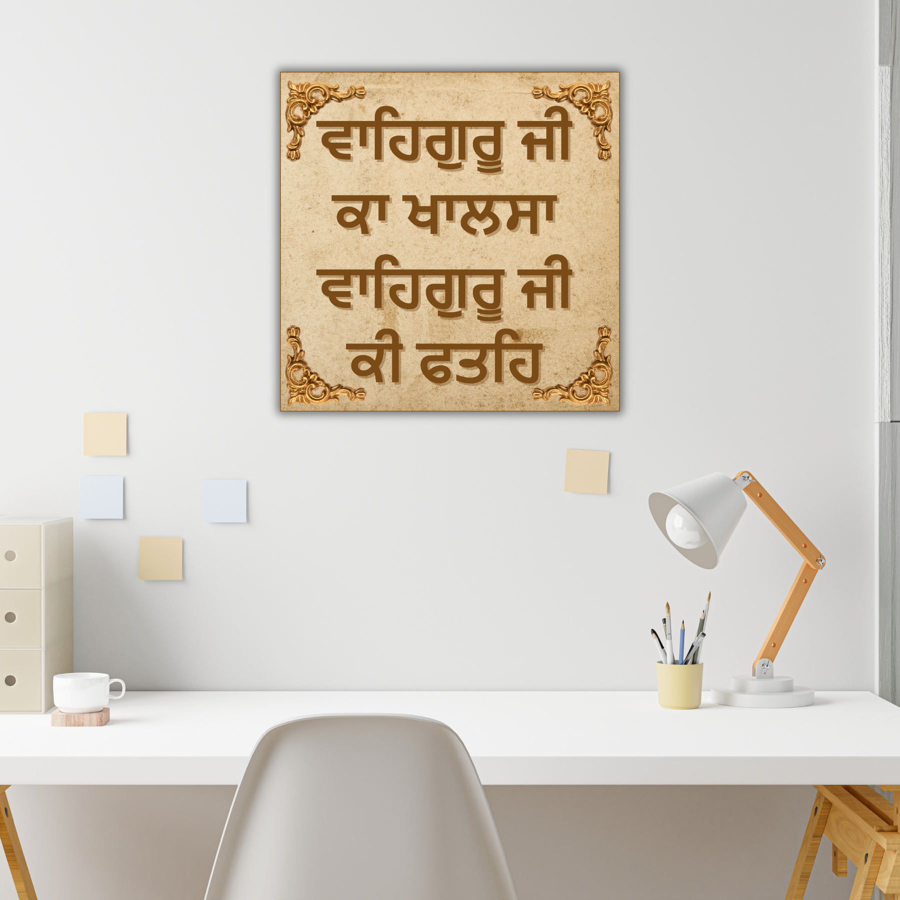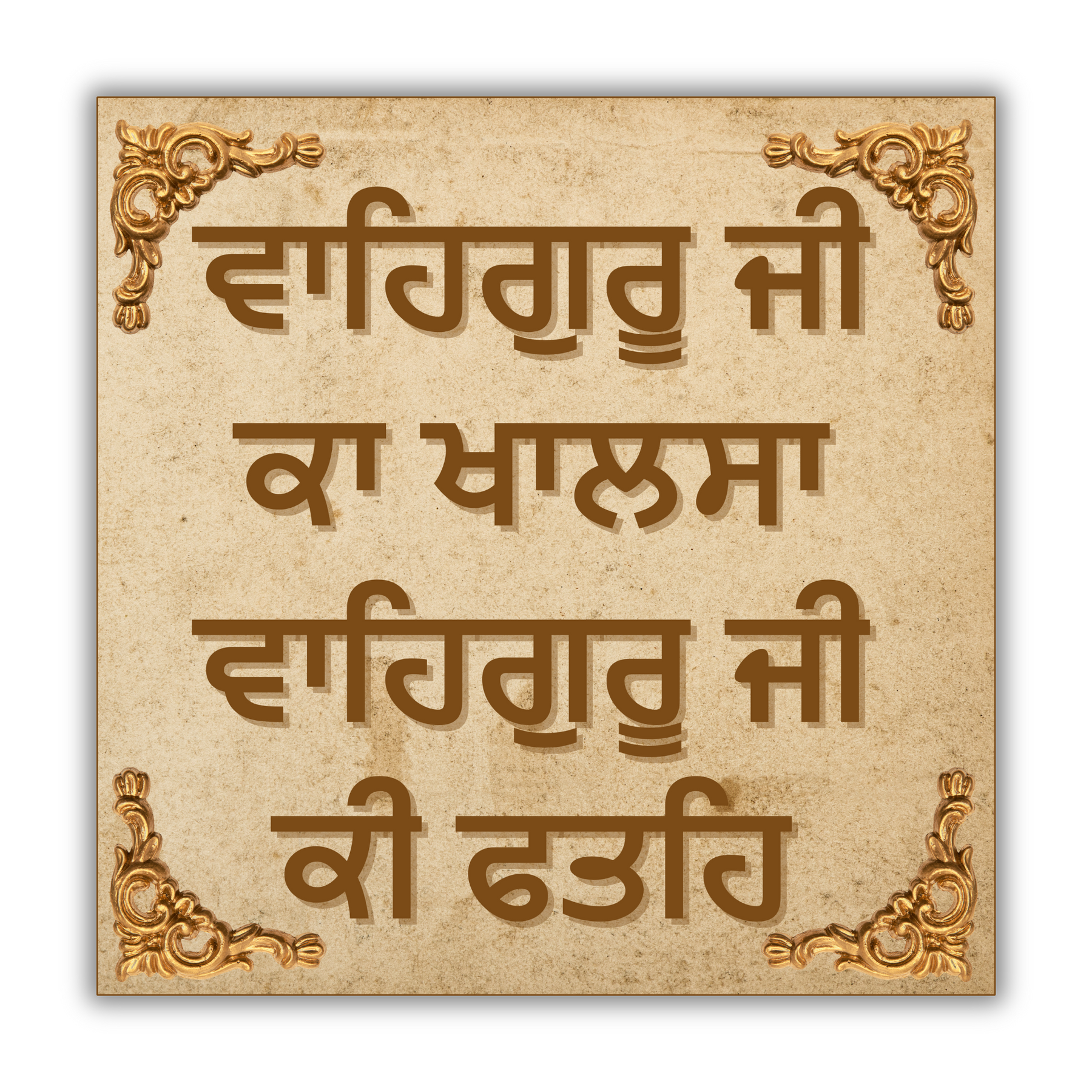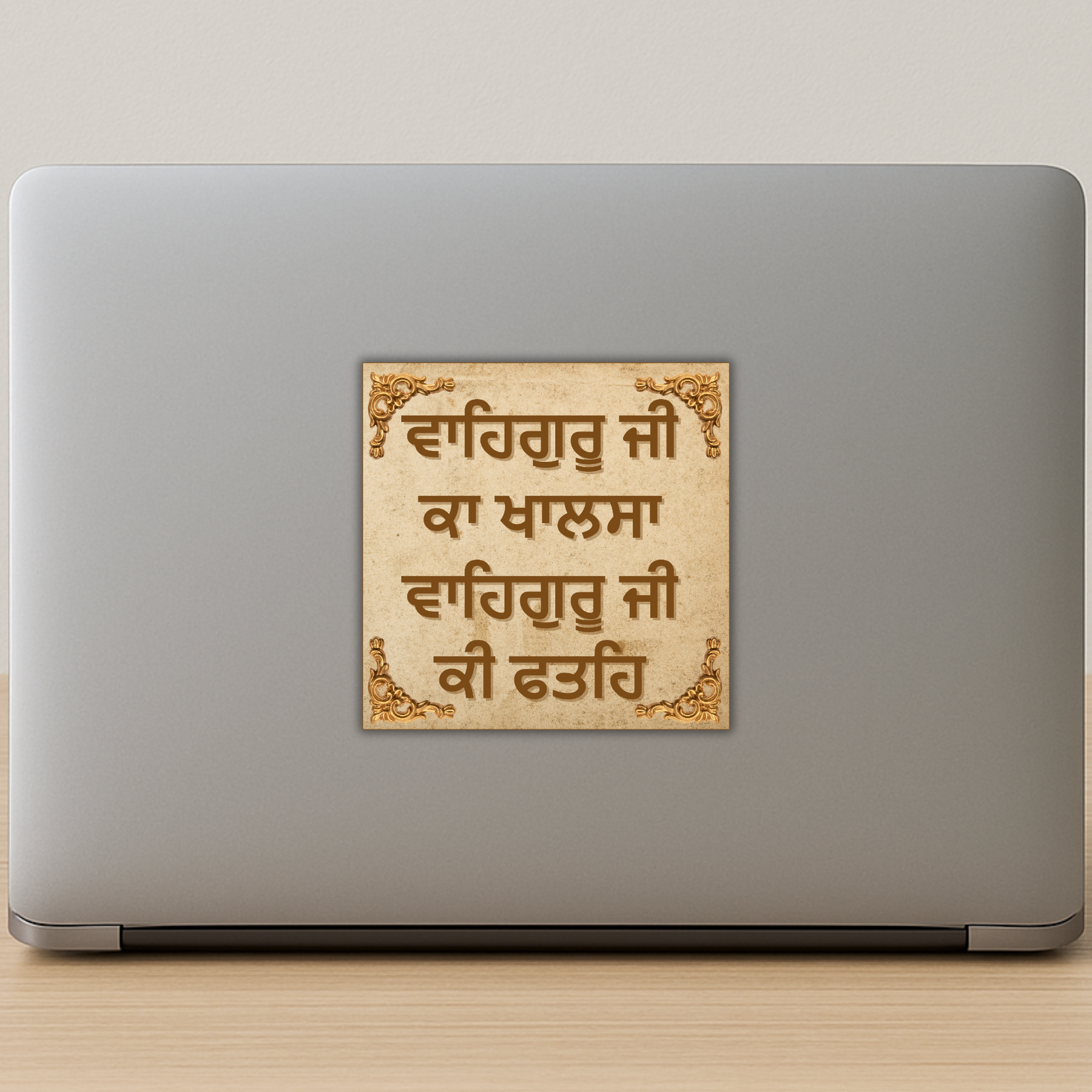 Spread the spirit of unity and faith with the STIXY™ "Waheguru Ji Ka Khalsa Waheguru Ji Ki Fateh" Sticker, a cherished Sikh greeting symbolizing respect, brotherhood, and devotion. Designed in bold Punjabi script over a textured antique background with golden ornamental corners, this decal exudes elegance and reverence.
