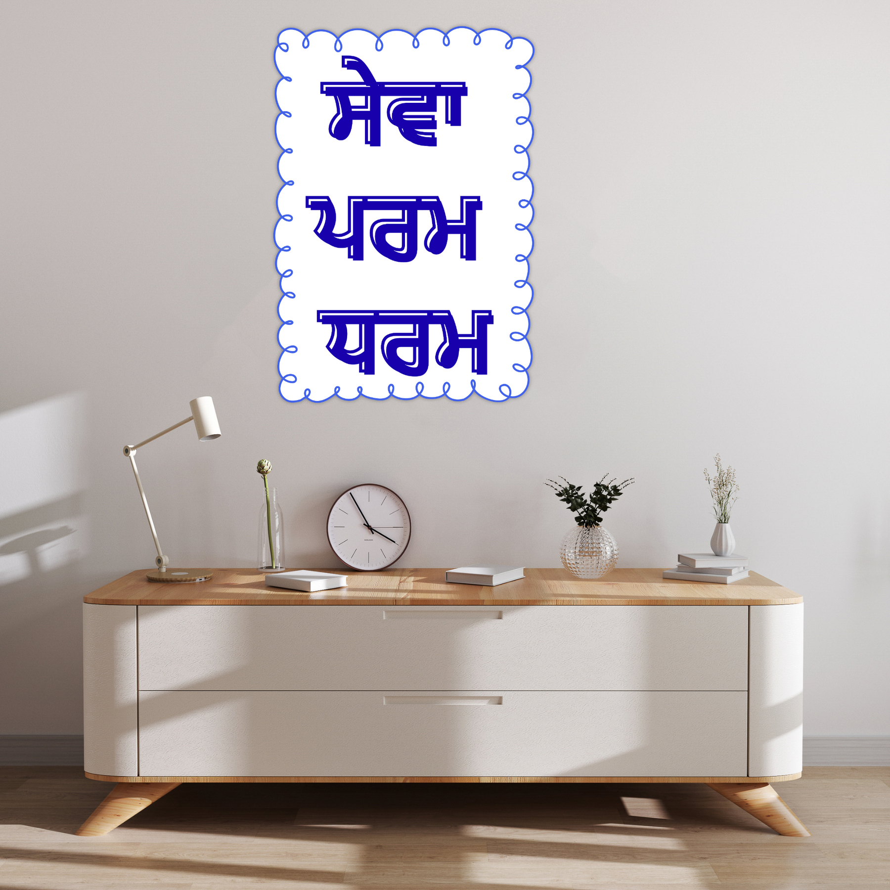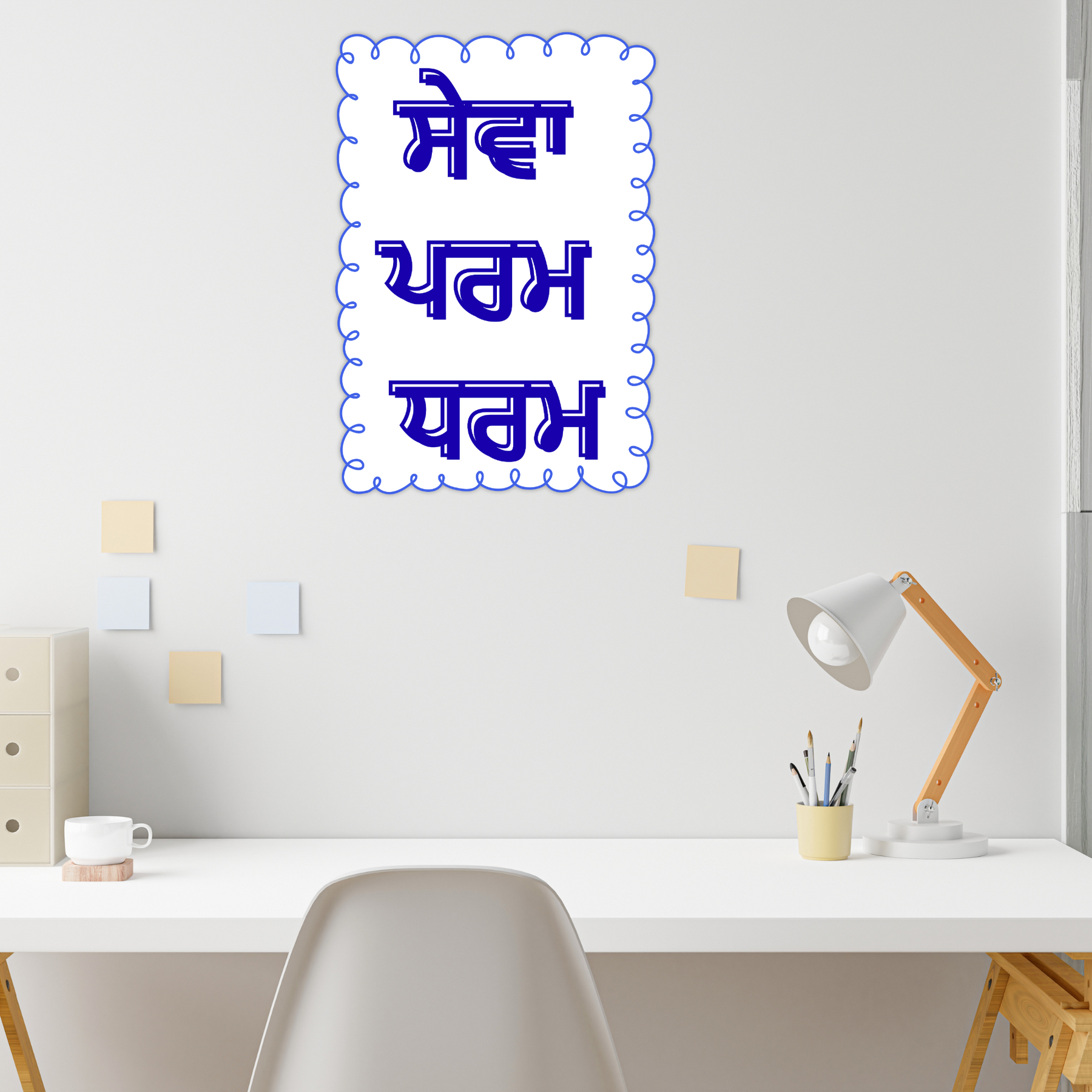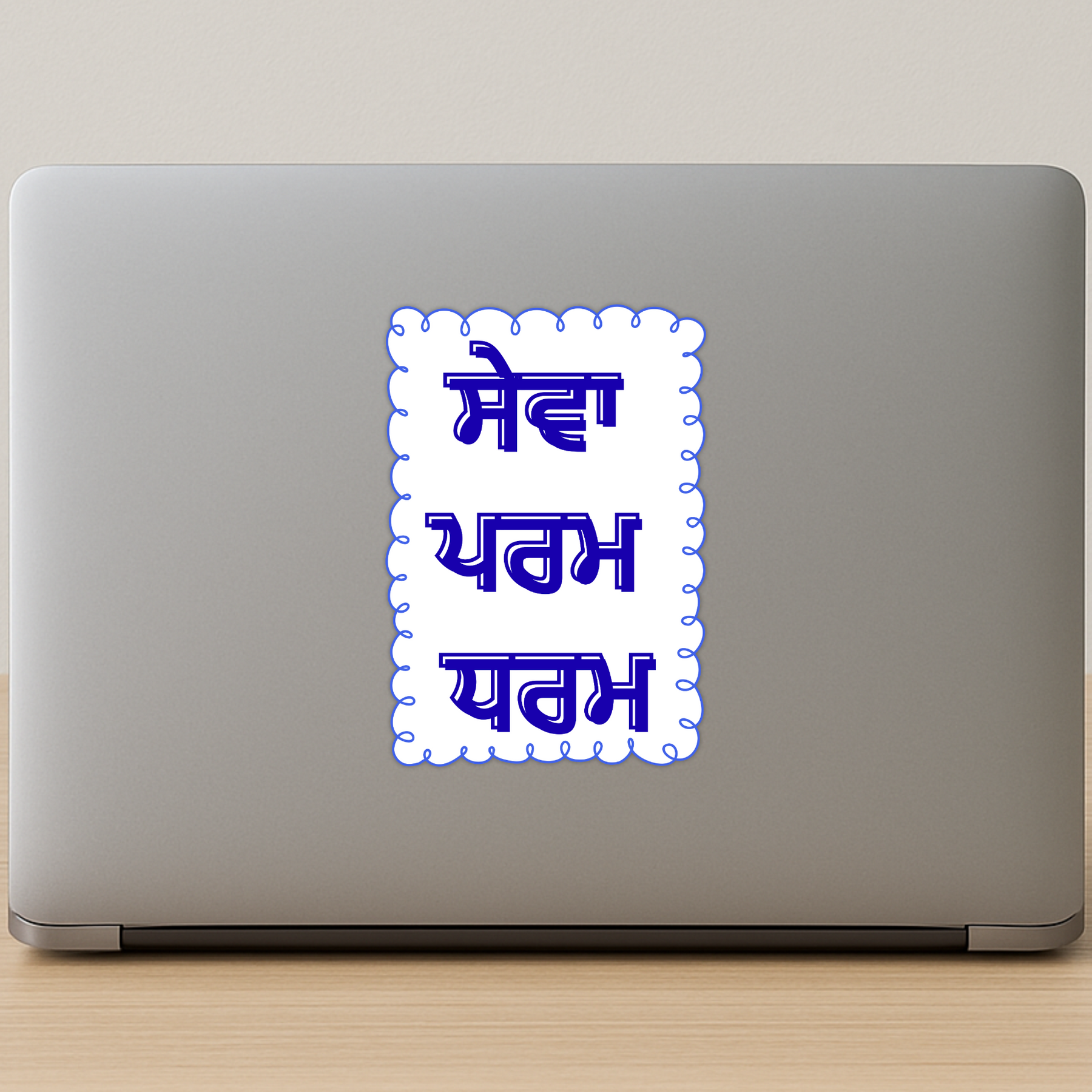 Spread the timeless Sikh and Punjabi value of selfless service with the STIXY™ "Seva Parm Dharm" Sticker. Designed in bold blue Gurmukhi text with a playful border, this sticker is perfect for displaying on laptops, notebooks, mirrors, or doors to inspire kindness and community service.