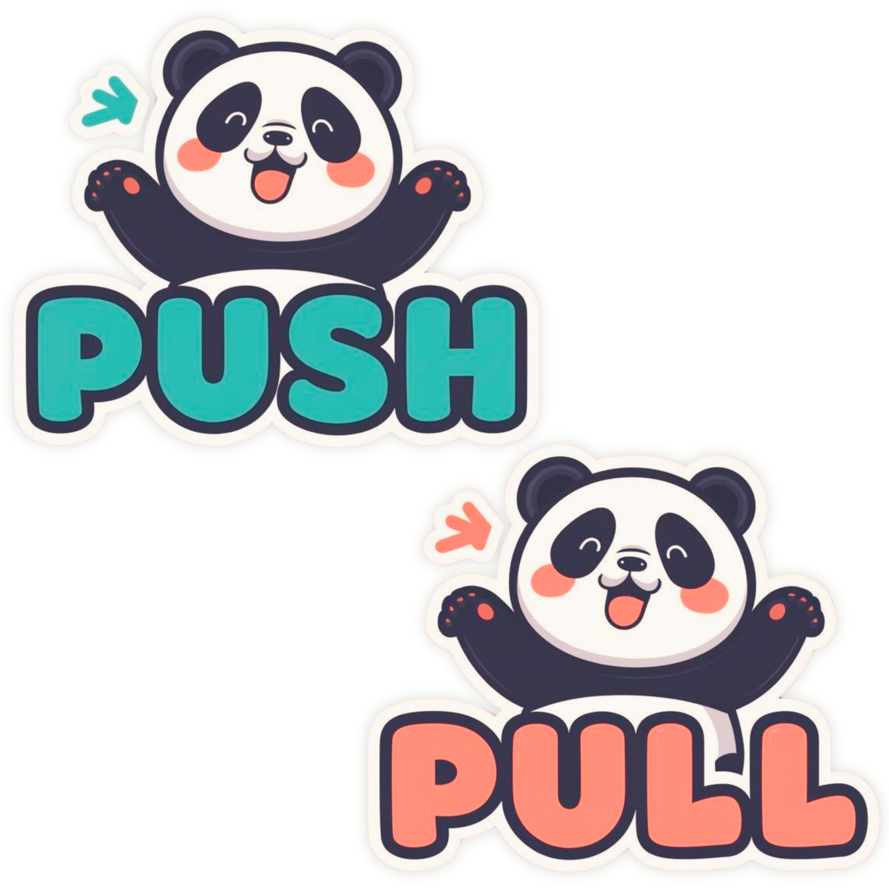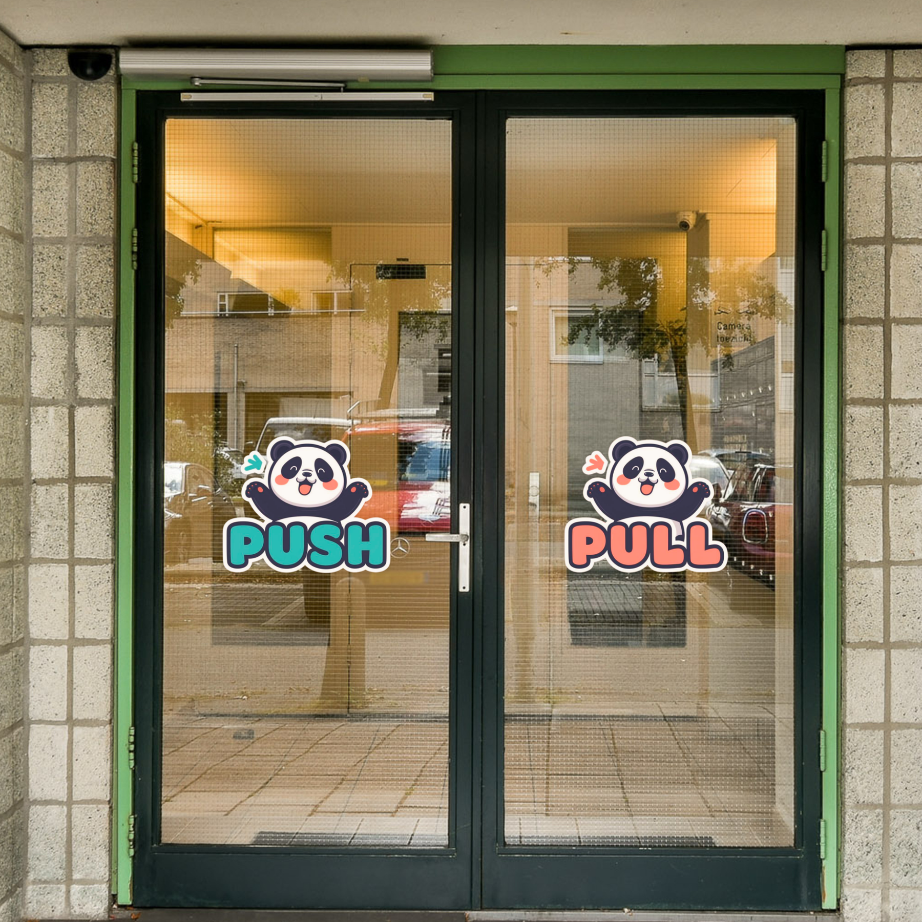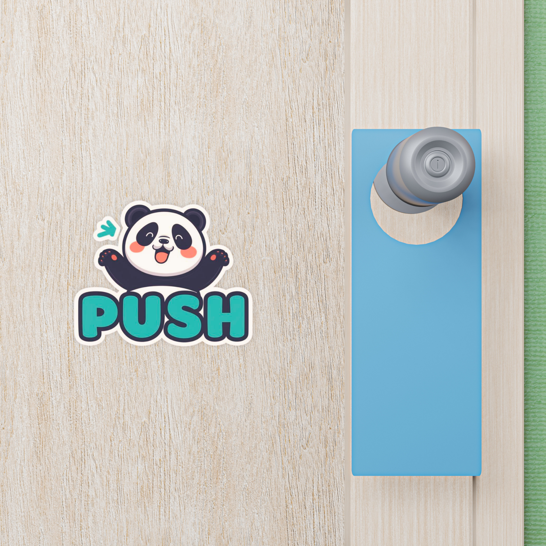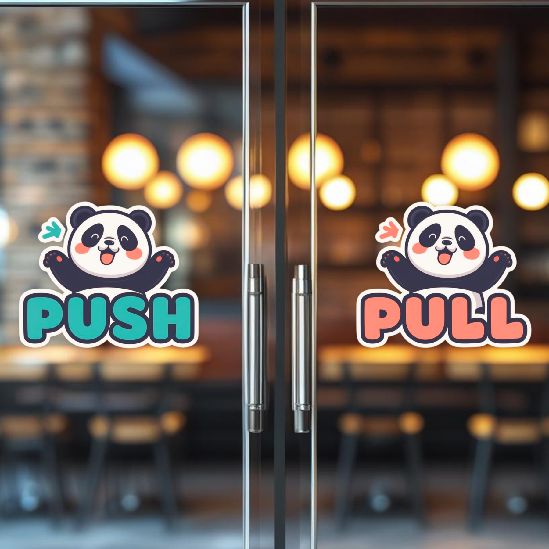 Add a fun and friendly touch to your doors with this STIXY Sticker featuring an adorable panda and bold PUSH / PULL text. Designed to be instantly understandable, this sticker helps guide movement clearly while adding a playful vibe to offices, cafés, shops, schools, and homes. The cute panda character makes it especially welcoming for kids and customers alike.