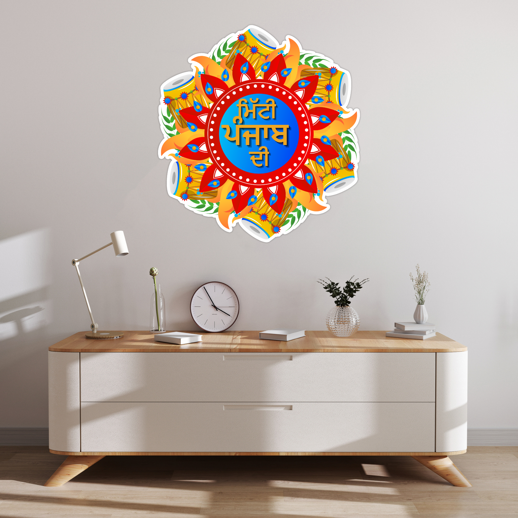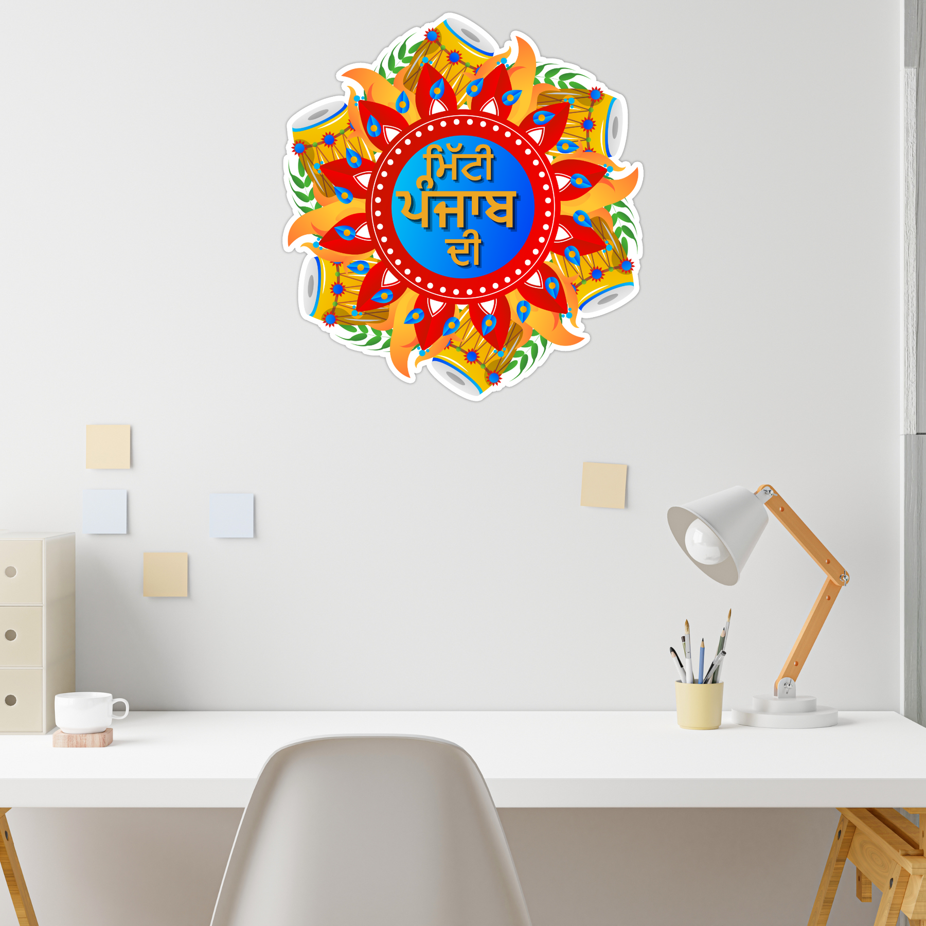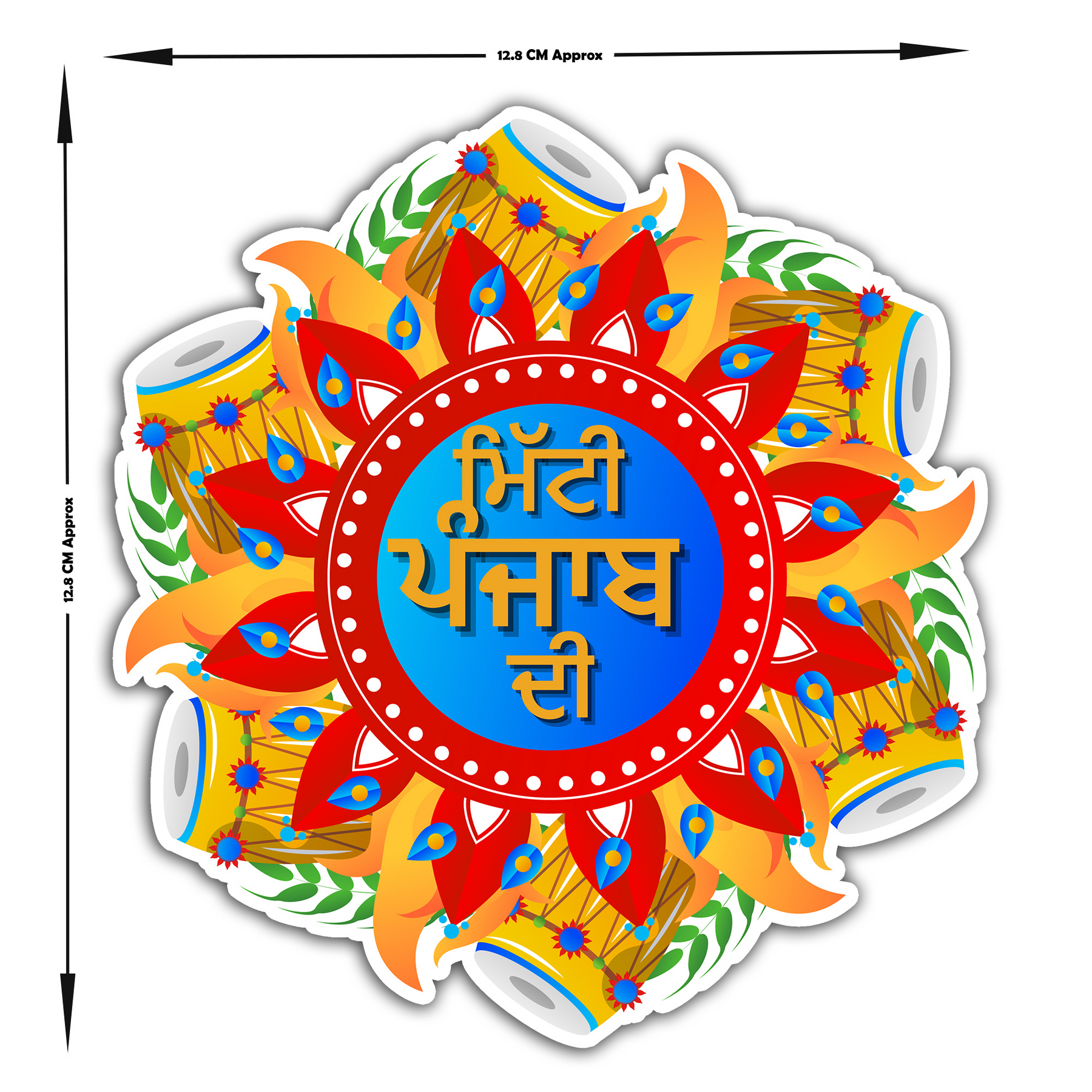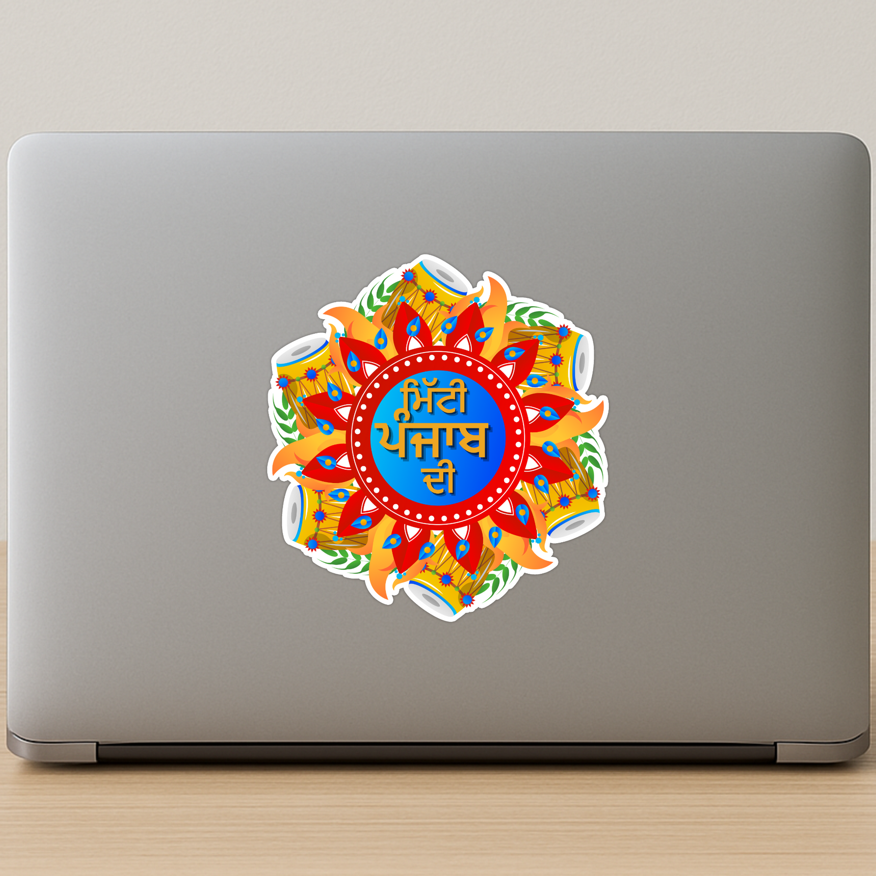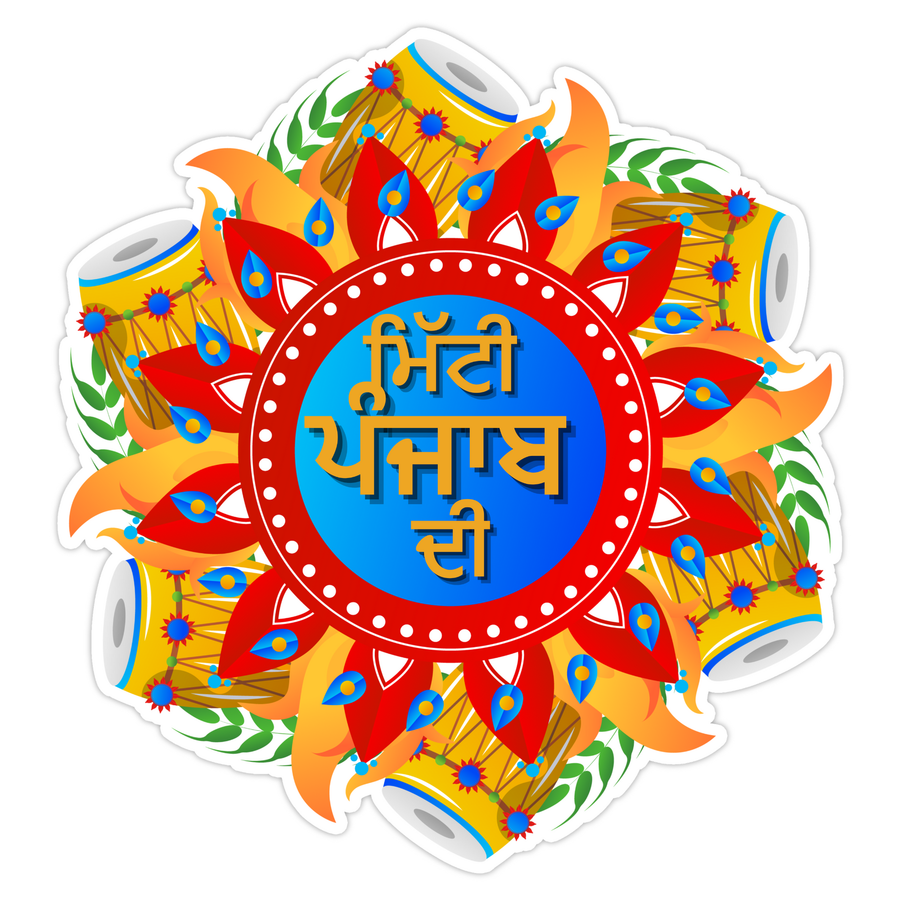 Celebrate the vibrant spirit of Punjab with the STIXY™ "Mitti Punjab Di" Sticker. Featuring bold Punjabi typography surrounded by dhols, colorful floral patterns, and festive elements, this design captures the energy and pride of Punjabi culture.